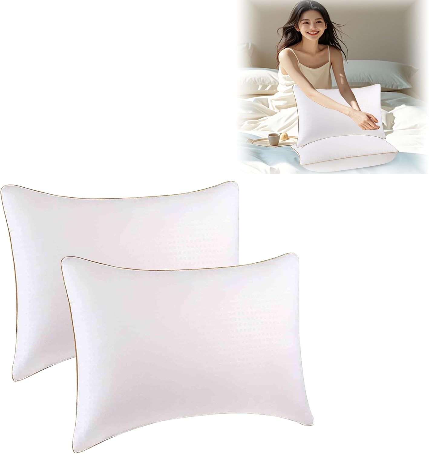 【Конструкция с терморегуляцией】Дышащий наполнитель и специальная ткань помогают поддерживать оптимальную температуру во время сна. Подушка эффективно отводит тепло, сохраняя свежесть, уменьшая ночную потливость и улучшая качество сна круглый год.