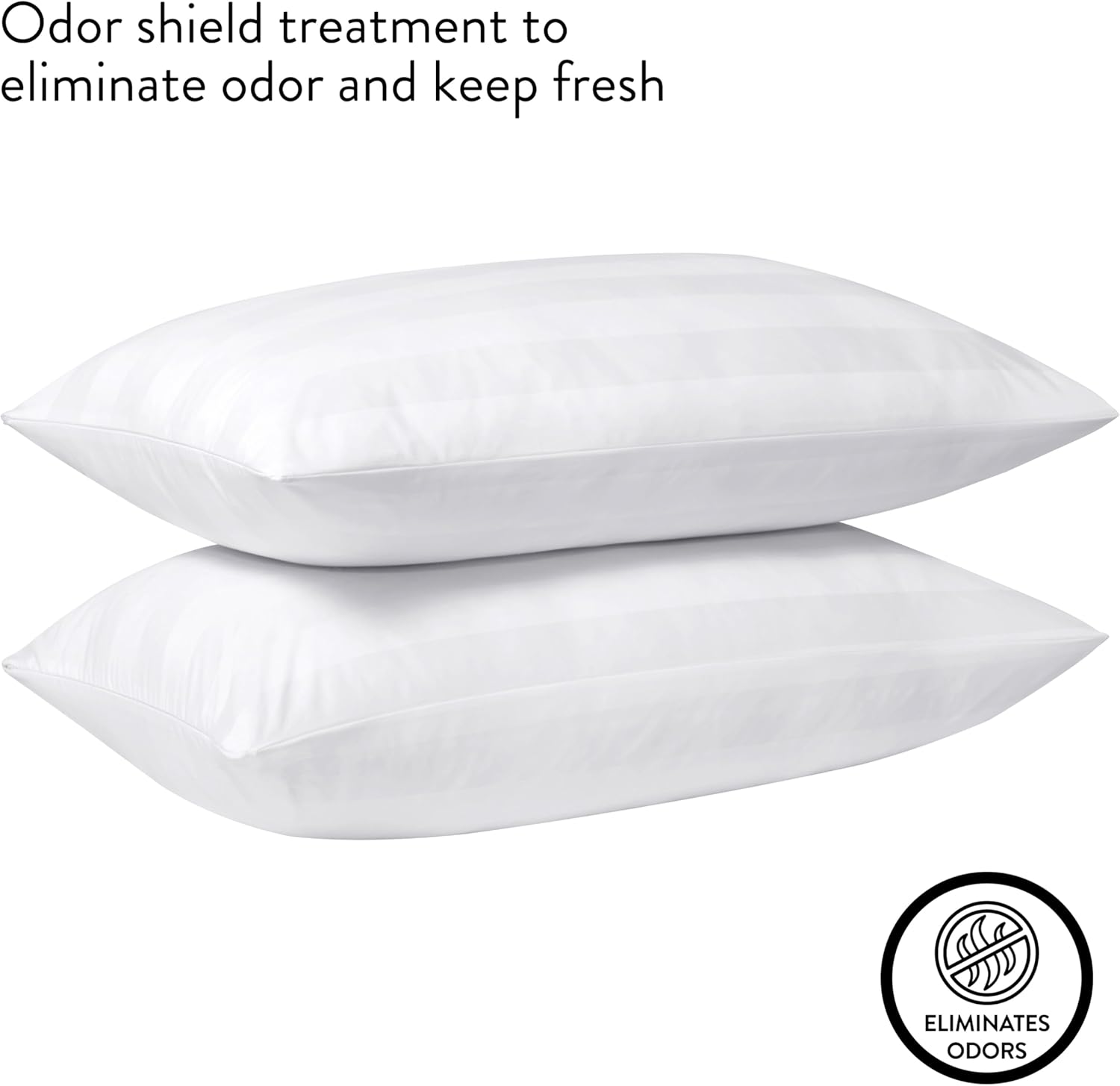 100% полиэстер НАБОР ИЗ 2 ПОДУШЕК: Dearfoams от бренда, подарившего вам ваши любимые тапочки. Набор из двух подушек размера King Size размером 50x91 см идеально подходит для наволочек и подушек размера King Size. МЯГКИЙ ЖАККАРДОВЫЙ ЧЕХОЛ: Эти мягкие и обработанные подушки способствуют здоровому сну и помогают бороться с запахами. Высококачественная и прочная ткань рассчитана на долгий срок службы. РОСКОШЬ ОТЕЛЯ У ВАС ДОМА: Эти жаккардовые подушки средней плотности обеспечивают невероятно мягкий и комфортный сон. Наполнитель из полиэстера придаёт этим подушкам объём, что делает их идеальными для сна любого типа: от сна на боку до сна на спине и животе. ПРОСТОТА УХОДА: Подушки можно стирать в стиральной машине, они долговечны, поэтому за ними легко ухаживать и они прослужат долгое время. СДЕЛАНО В США: наполнитель производится локально, в США, из отечественных и импортных материалов. Мы используем только свежий наполнитель для наших подушек, чтобы гарантировать высокое качество.