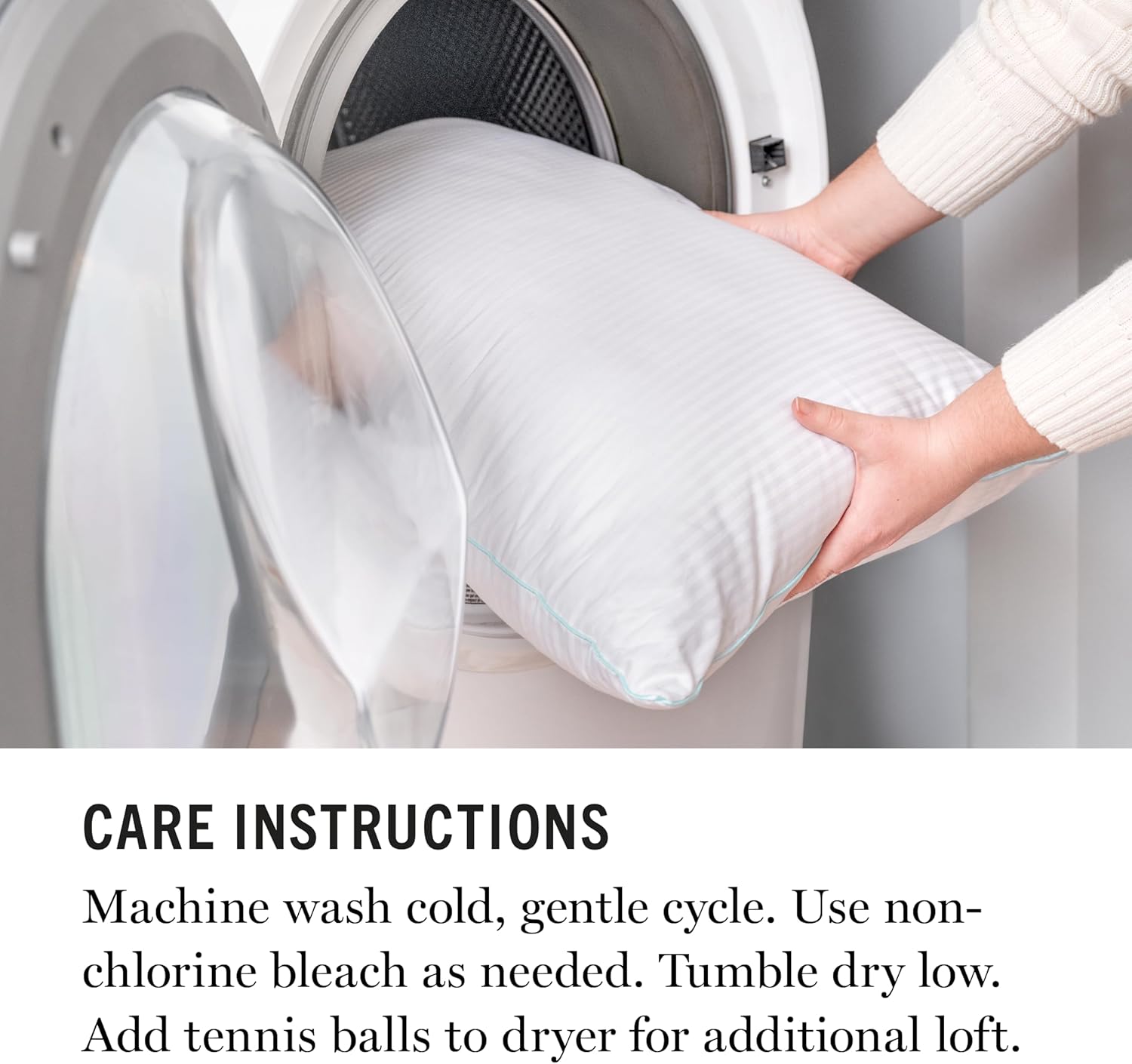 52% полиэстер, 48% хлопок Великолепные подушки для кровати с изысканным дизайном украсят ваш дом функциональностью и роскошным комфортом. Они украшены элегантным узором в вертикальные полоски в тон и синей атласной окантовкой по всем краям. Ощутите комфортную поддержку с нашим комплектом из двух подушек. Выберите стандартный размер Queen или King Size. ПОЗВОЛЬТЕ КОМФОРТНЫЙ СОН с наполнителем BloomLoft Wel-Fill из 100% полиэстера. Этот гипоаллергенный наполнитель с эффектом памяти формы мягко воздействует на точки давления и обеспечивает более прохладный сон, чем традиционная пена. Внешний слой изготовлен из смеси 52% полиэстера и 48% хлопка, обеспечивая баланс прочности и комфорта. Эти подушки идеально подходят для сна на боку, спине и животе, поскольку они постоянно подстраиваются под движения головы и шеи, подстраиваясь под ваше любимое положение. УМНАЯ УПАКОВКА. Эти подушки спрессованы и упакованы таким образом, чтобы снизить углеродный след и воздействие на окружающую среду. 1. Осторожно откройте пакет, не разрезая подушку. Извлеките подушку из пакета и дайте ей расправиться. 2. Вручную взбейте подушку, чтобы восстановить её форму, и при необходимости поместите её в сушильную машину на минимальной температуре на 10 минут. ПРОСТОЙ УХОД: вы сможете расслабиться стильно благодаря высококачественным изделиям по выгодной цене. Эти подушки для сна можно стирать в стиральной машине, что облегчает уход в домашних условиях. Стирайте в холодной воде на деликатном режиме с изделиями похожих цветов. Используйте только отбеливатель без хлора по мере необходимости. Сушить в стиральной машине при низкой температуре. Не гладить. Для достижения наилучших результатов используйте стиральную машину с фронтальной загрузкой и стирайте две подушки одновременно. ПРОИЗВЕДЕНО С УМОМ, поскольку мы ценим превосходную функциональность и инновации. Внешний слой изготовлен с заботой об окружающей среде, с использованием экологически безопасных методов ведения сельского хозяйства и водосберегающих технологий. Эти подушки спрессованы и упакованы вместе, чтобы уменьшить углеродный след и воздействие на окружающую среду. Наполнитель и отделка выполнены в США.