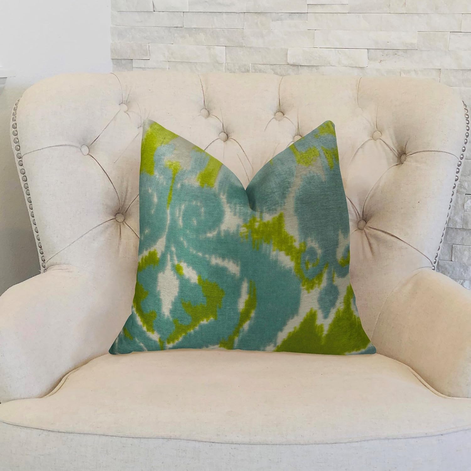 Plutus Brands Подушка Plutus Velvet Pine Cliff Blue Citrine and Cream Blue