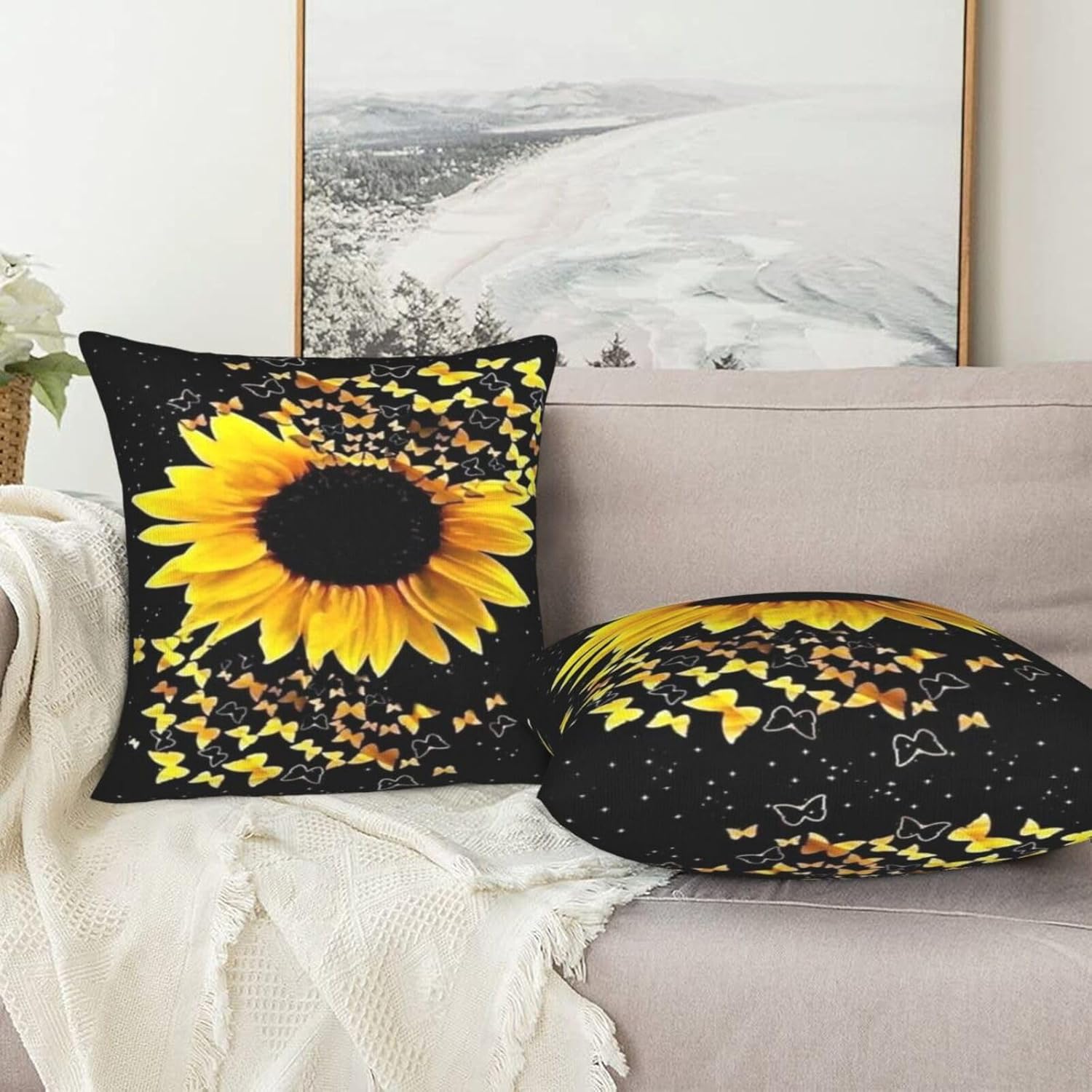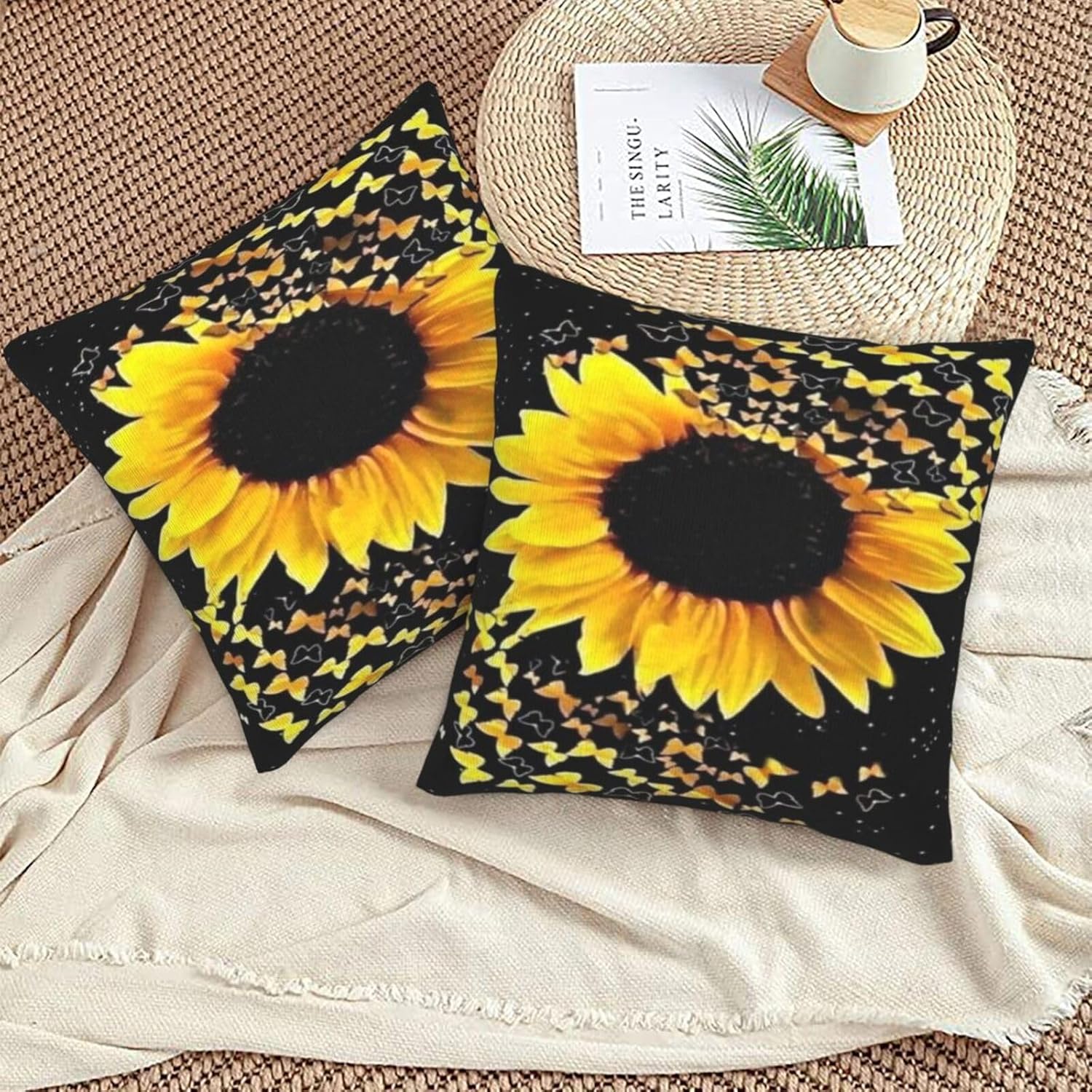 BURLOE Чехлы для декоративных подушек Sunflower Plush White
