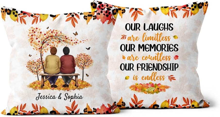 Бесплатная персонализация: персонализируйте квадратную подушку «Осенний пейзаж с двумя подругами», нажав «Настроить сейчас» и заполнив поле, указав имя, прозвище и фотографию вашей лучшей подруги. Она украшена трогательными цитатами и высказываниями, выражающими глубокую любовь к вашей лучшей подруге, лучшей подруге или сестре. Удивите её этим персонализированным подарком, созданным специально для неё.