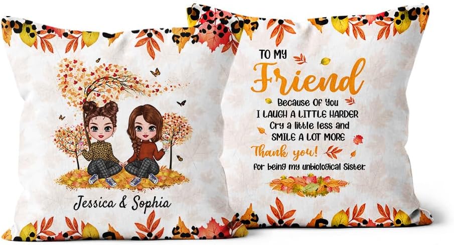 Бесплатная персонализация: персонализируйте свою квадратную подушку «Осенняя дружба с двумя девушками», нажав «Настроить сейчас» и заполнив поле именем, прозвищем и фотографией вашей лучшей подруги. Она украшена трогательными цитатами и высказываниями, выражающими глубокую любовь к вашей лучшей подруге, лучшей подруге или сестре. Удивите её этим персонализированным подарком, созданным специально для неё.