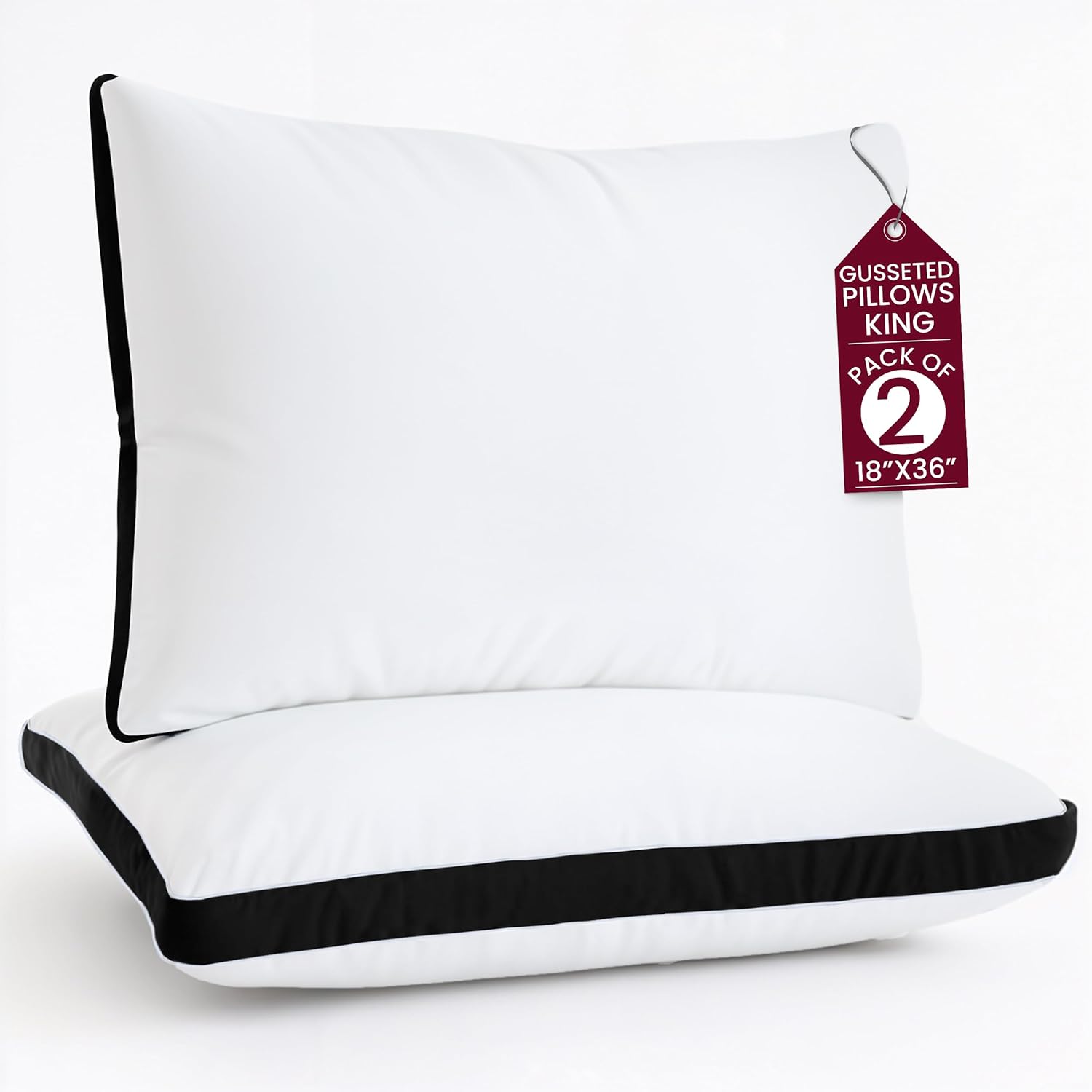 ПОДУШКИ ДЛЯ СПОКОЙНОГО СНА: комплект из 2 подушек размера «king size» размером 36x18 дюймов со стильными вставками по бокам для лучшего расширения и структурной поддержки.