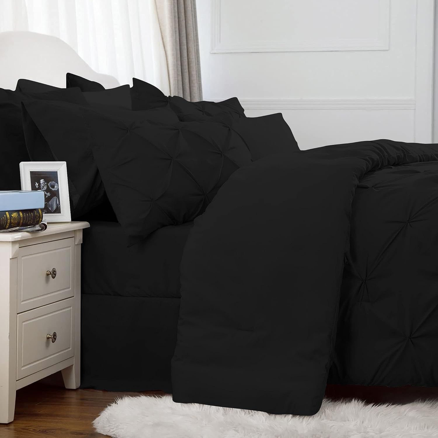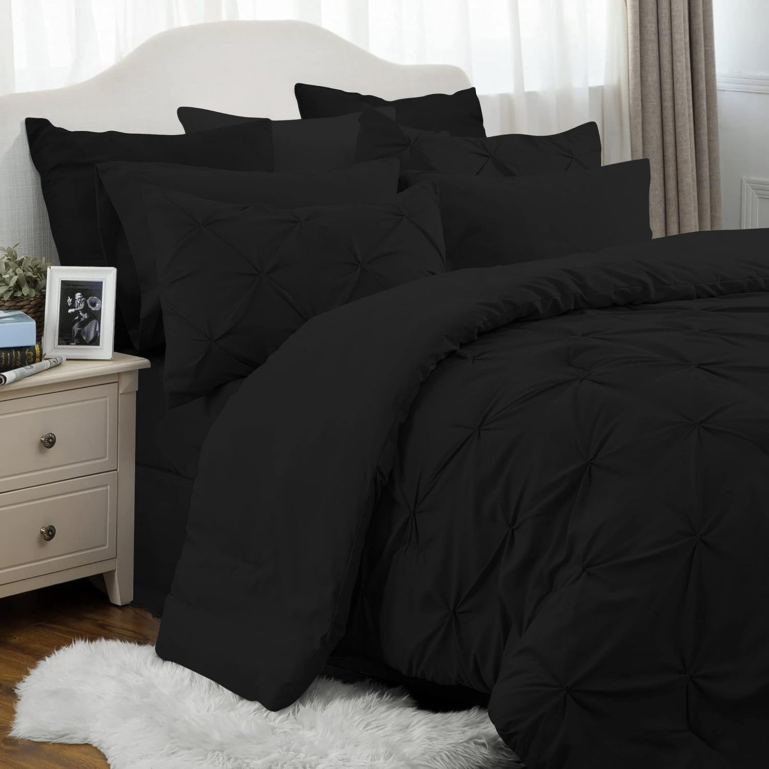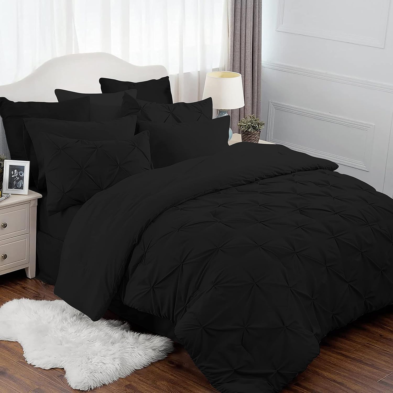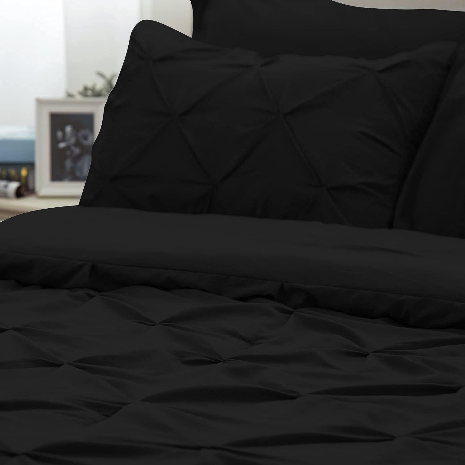 Уникальный дизайн: 15-дюймовый глубокий пододеяльник и простыни на резинке в комплекте с плиссированным одеялом плотно покрывают ваш матрас. Наволочки-конверты легко надевать и снимать.
