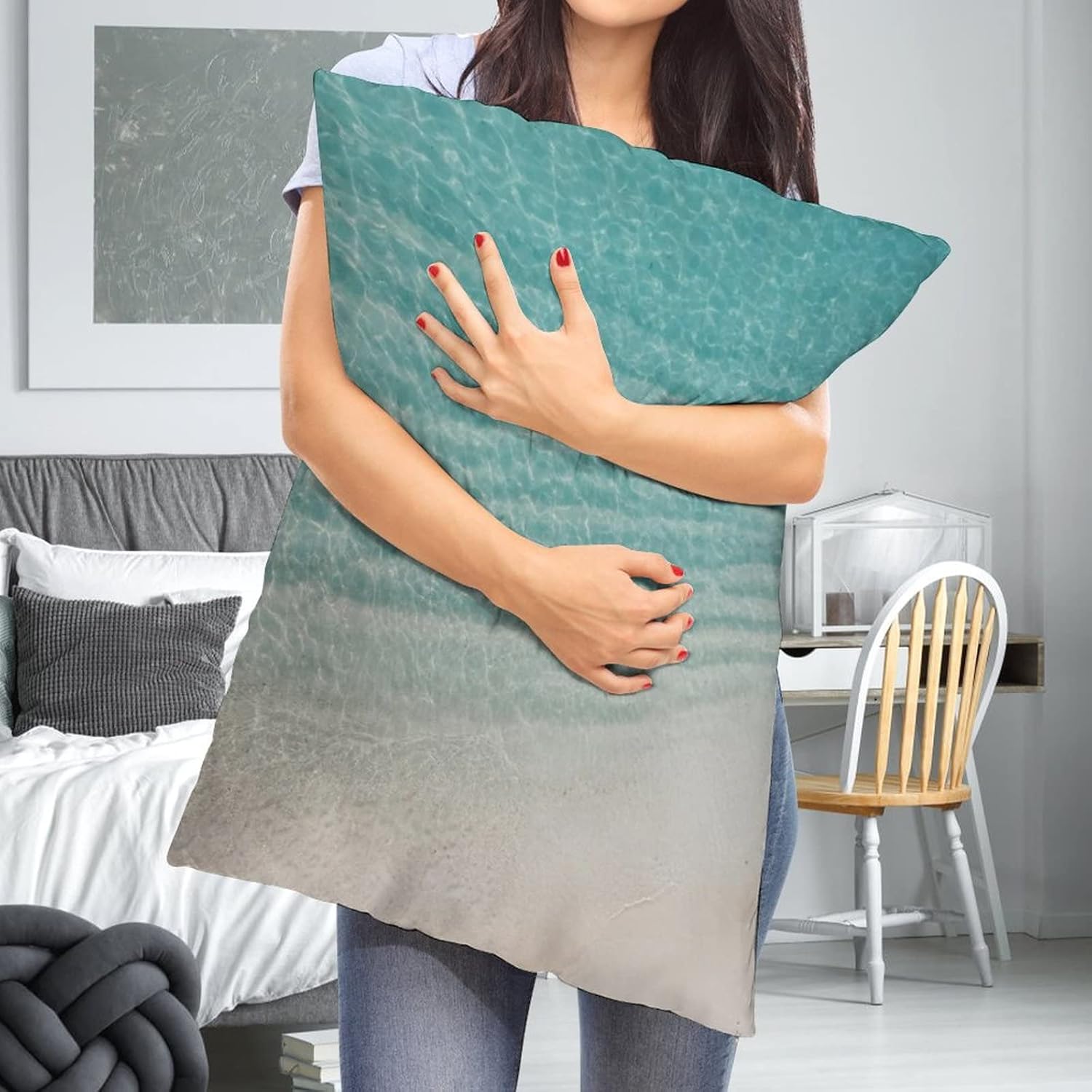 【Уникальный дизайн】Двусторонняя прозрачная печать, не выцветает, невидимая потайная молния, идеальное украшение для дома, квартиры, кровати, спальни, гостиной, дивана.