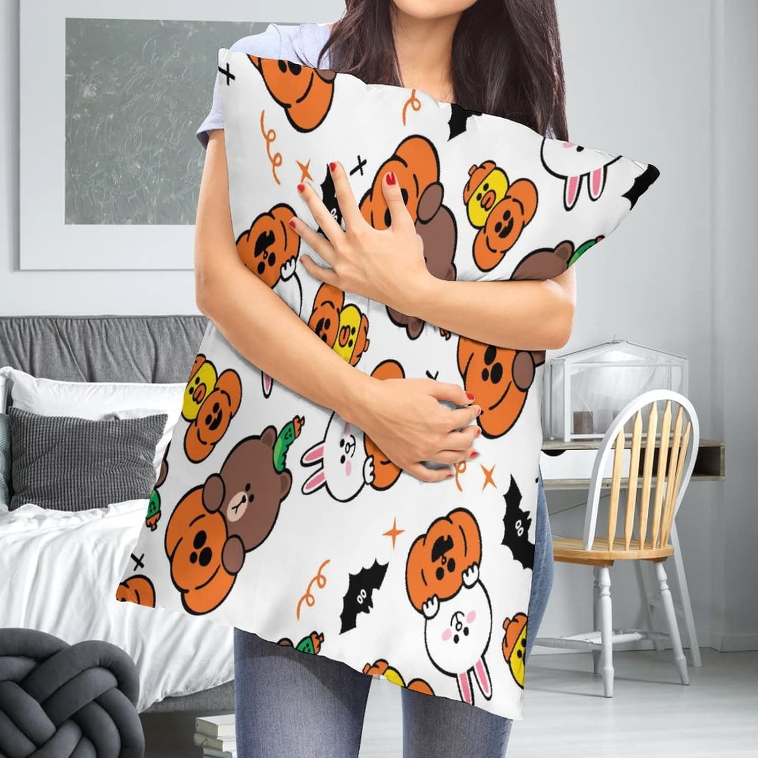 【Уникальный дизайн】Двусторонняя прозрачная печать, не выцветает, невидимая потайная молния, идеальное украшение для дома, квартиры, кровати, спальни, гостиной, дивана.