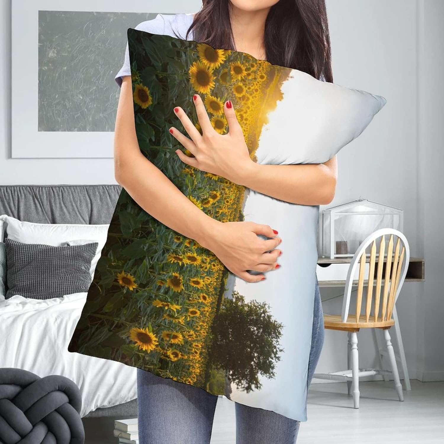 【Уникальный дизайн】Двусторонняя прозрачная печать, не выцветает, невидимая потайная молния, идеальное украшение для дома, квартиры, кровати, спальни, гостиной, дивана.