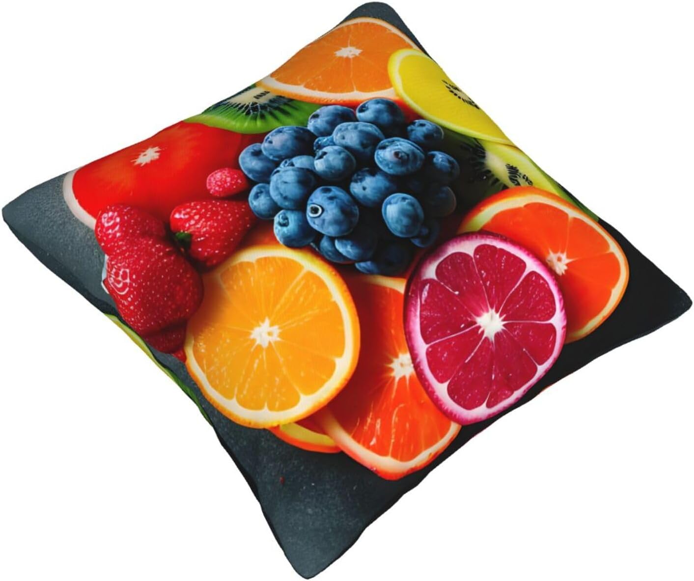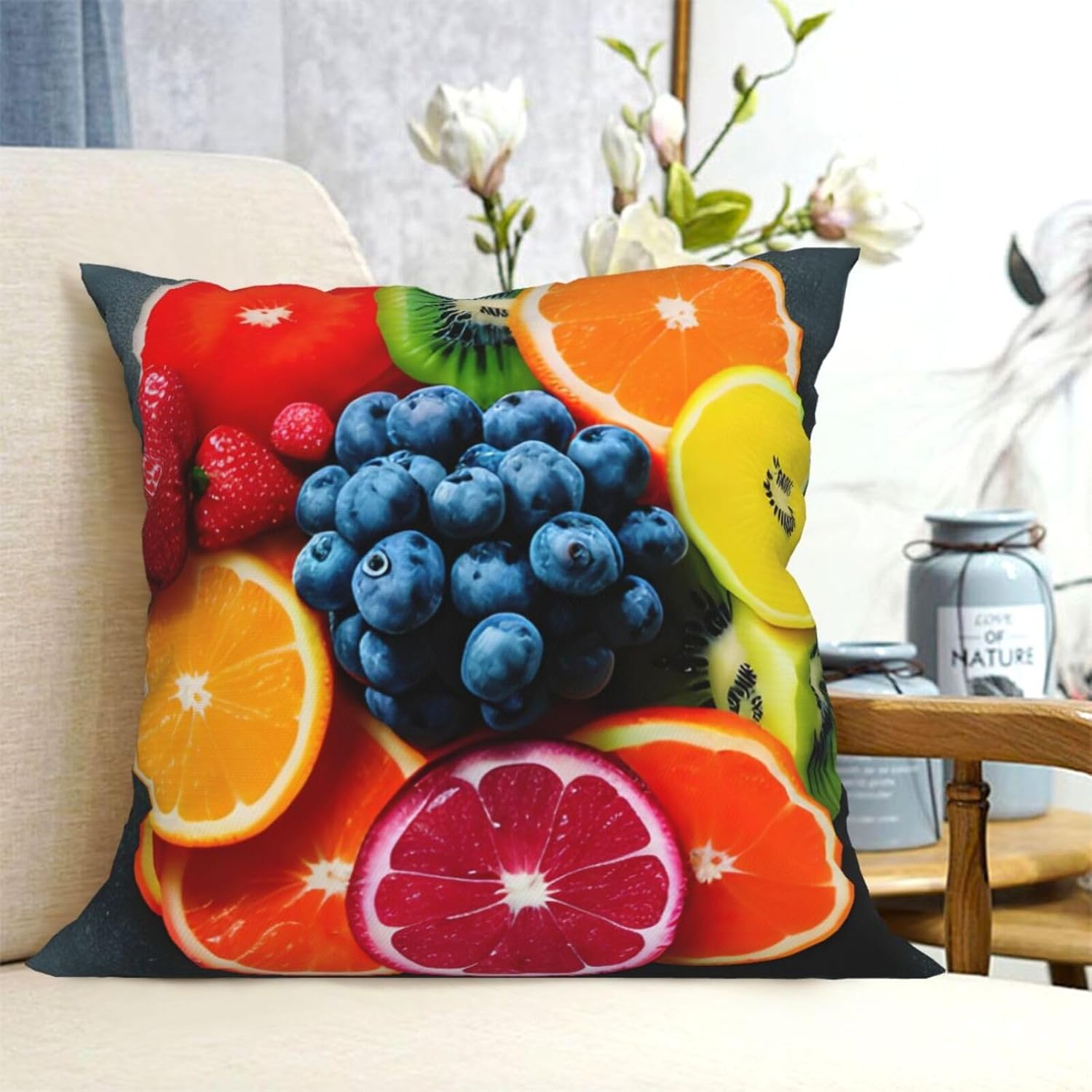 Двусторонний принт «Радуга фруктов»: эта декоративная подушка имеет рисунок, полностью напечатанный с обеих сторон, что обеспечивает визуально привлекательный вид с любого ракурса.