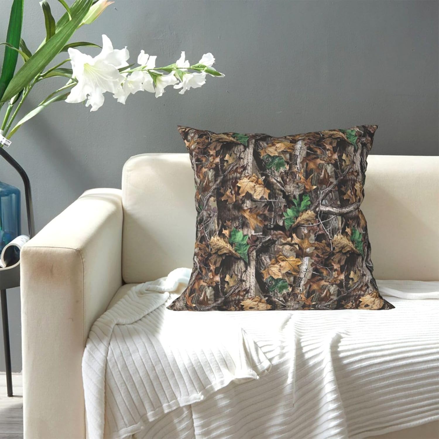 Двусторонняя печать с камуфляжным принтом Cold Tree: эта декоративная подушка имеет рисунок, полностью напечатанный с обеих сторон, что обеспечивает визуально привлекательный вид с любого ракурса.