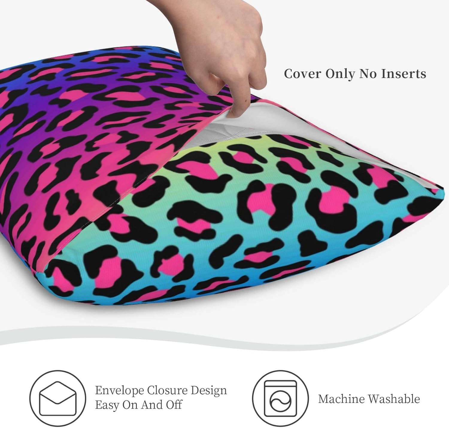 Pevtufa Чехол на подушку Leopard Neon Rainbow Gradient Print с застежкой-конверт Leopard Neon Rainbow Gradient