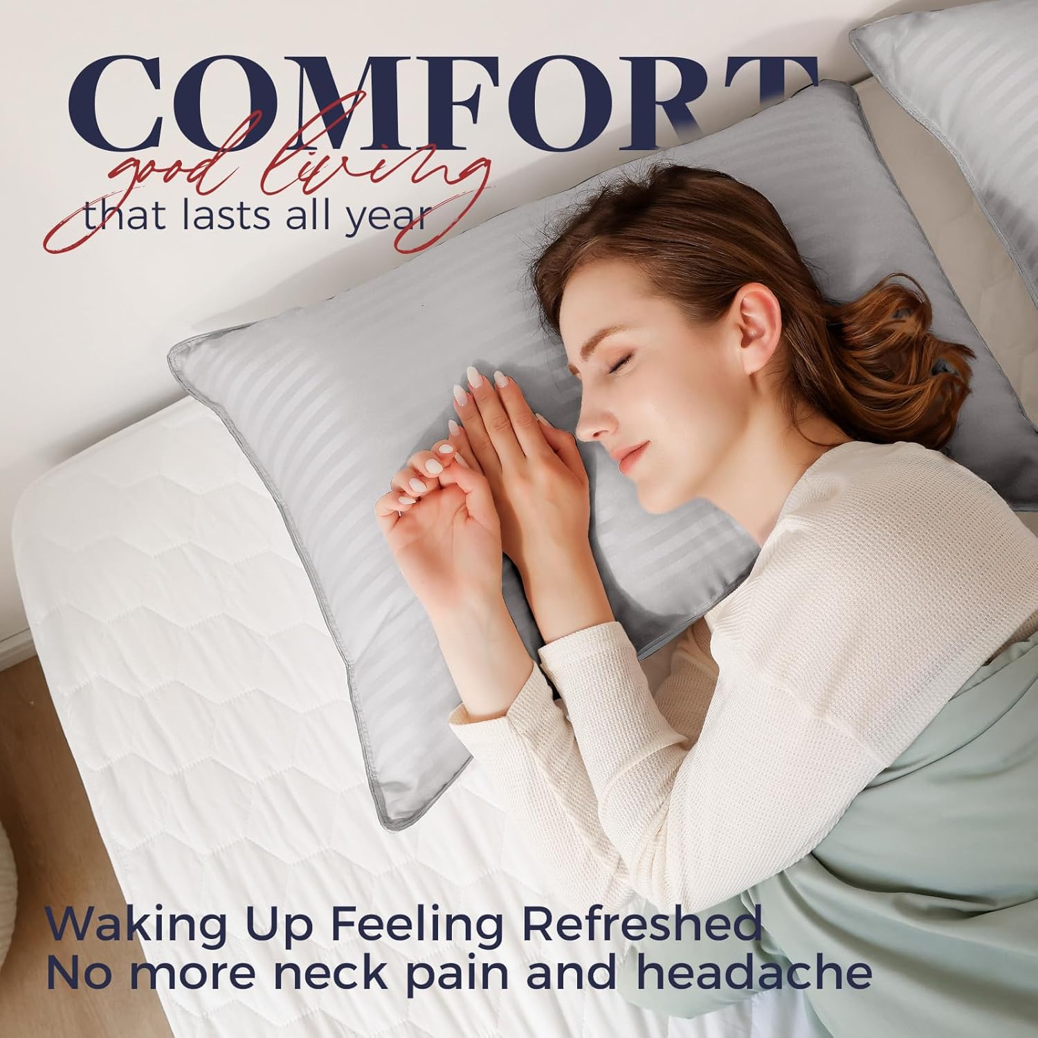 СТИЛЬНЫЙ ДИЗАЙН: Эти мягкие серебристые подушки для сна с элегантным жаккардовым узором в прямую полоску добавят изысканности любой спальне. Идеально подойдут в качестве трогательного и трогательного подарка семье или друзьям.