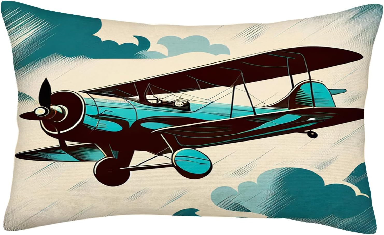 Generic Декоративная наволочка с принтом биплана Blue 10