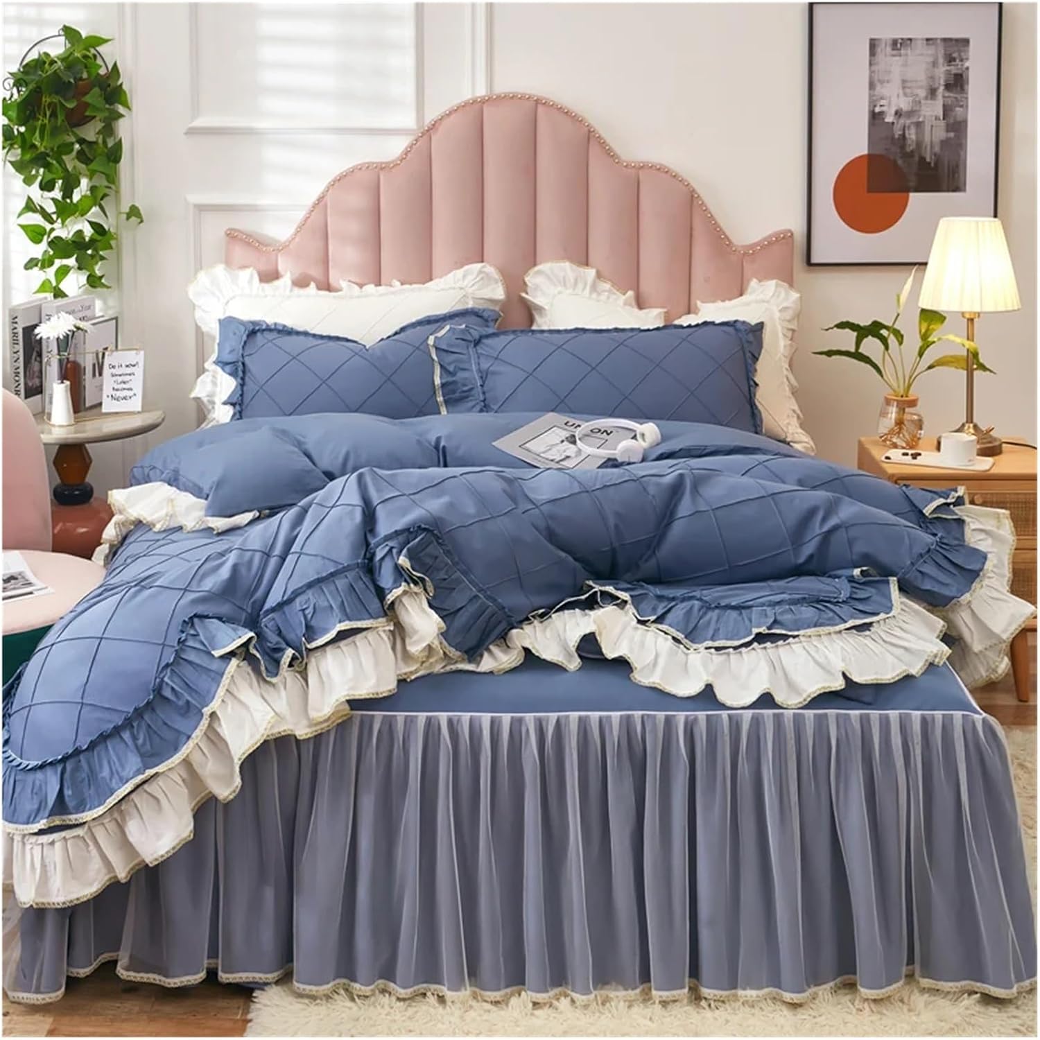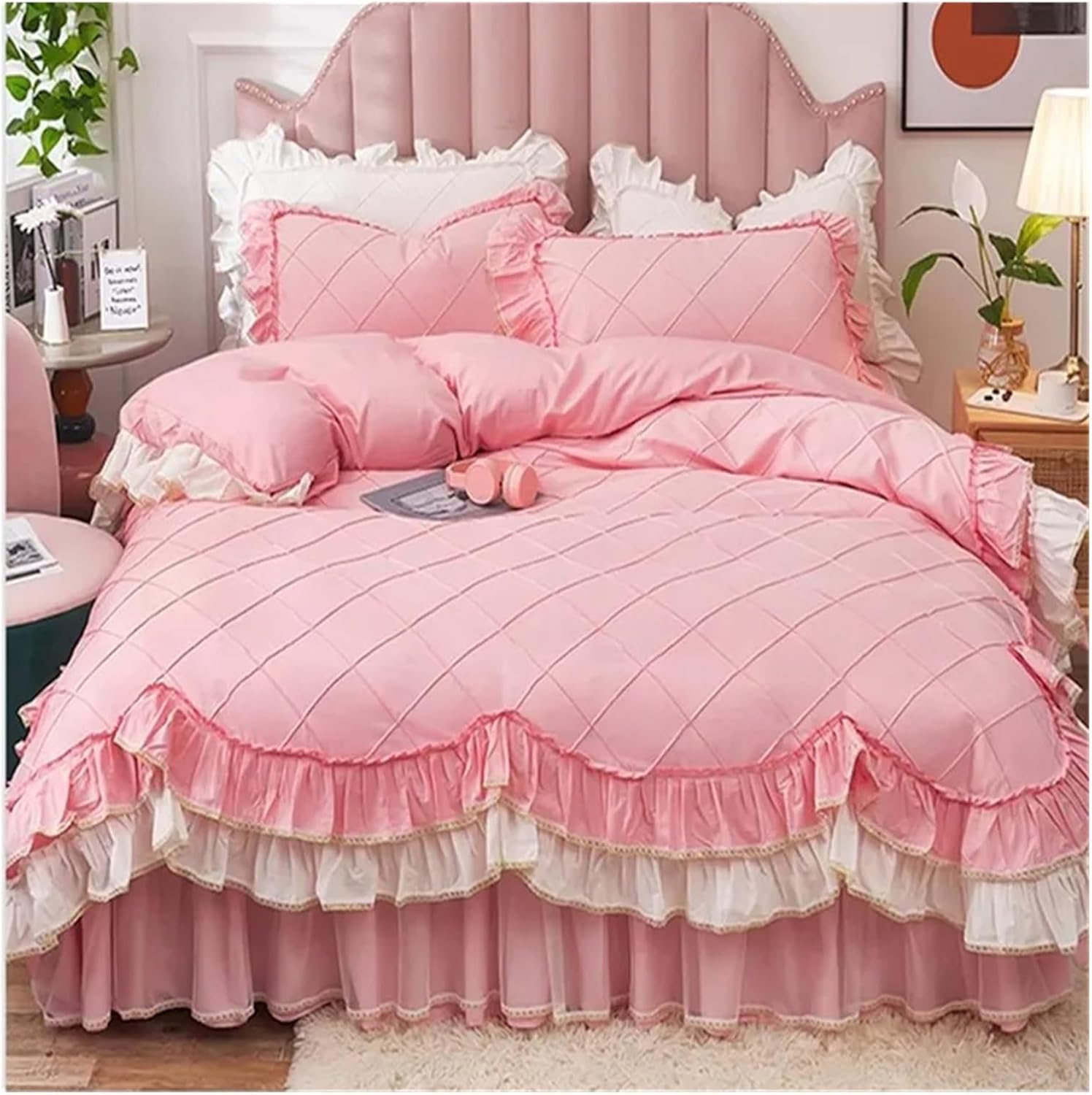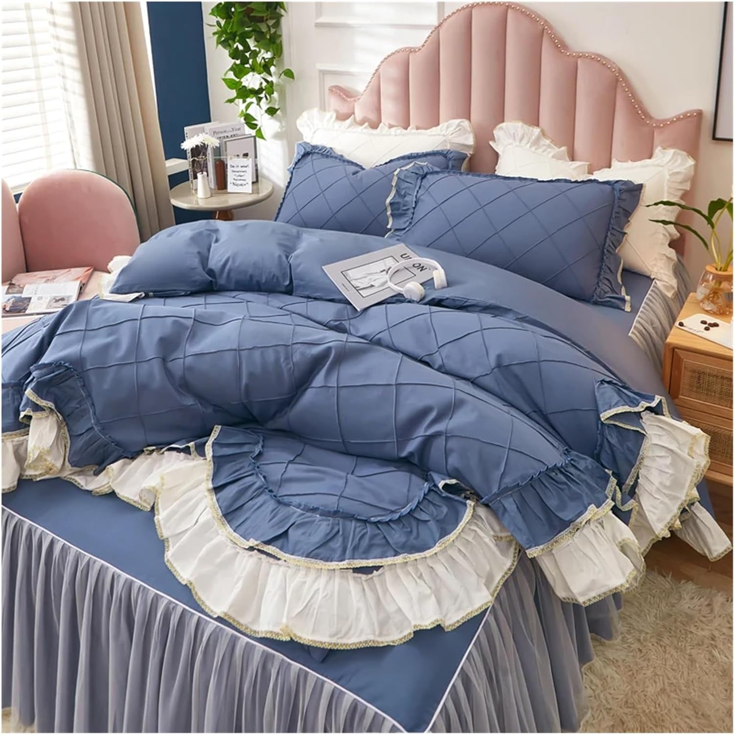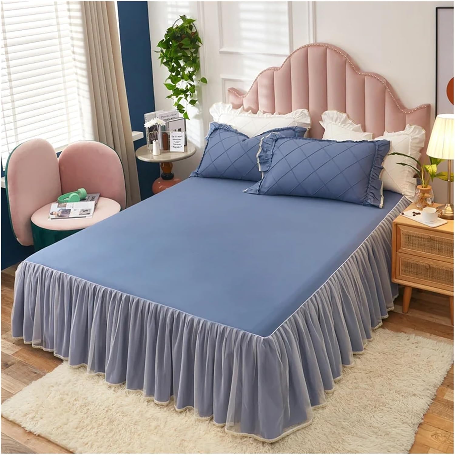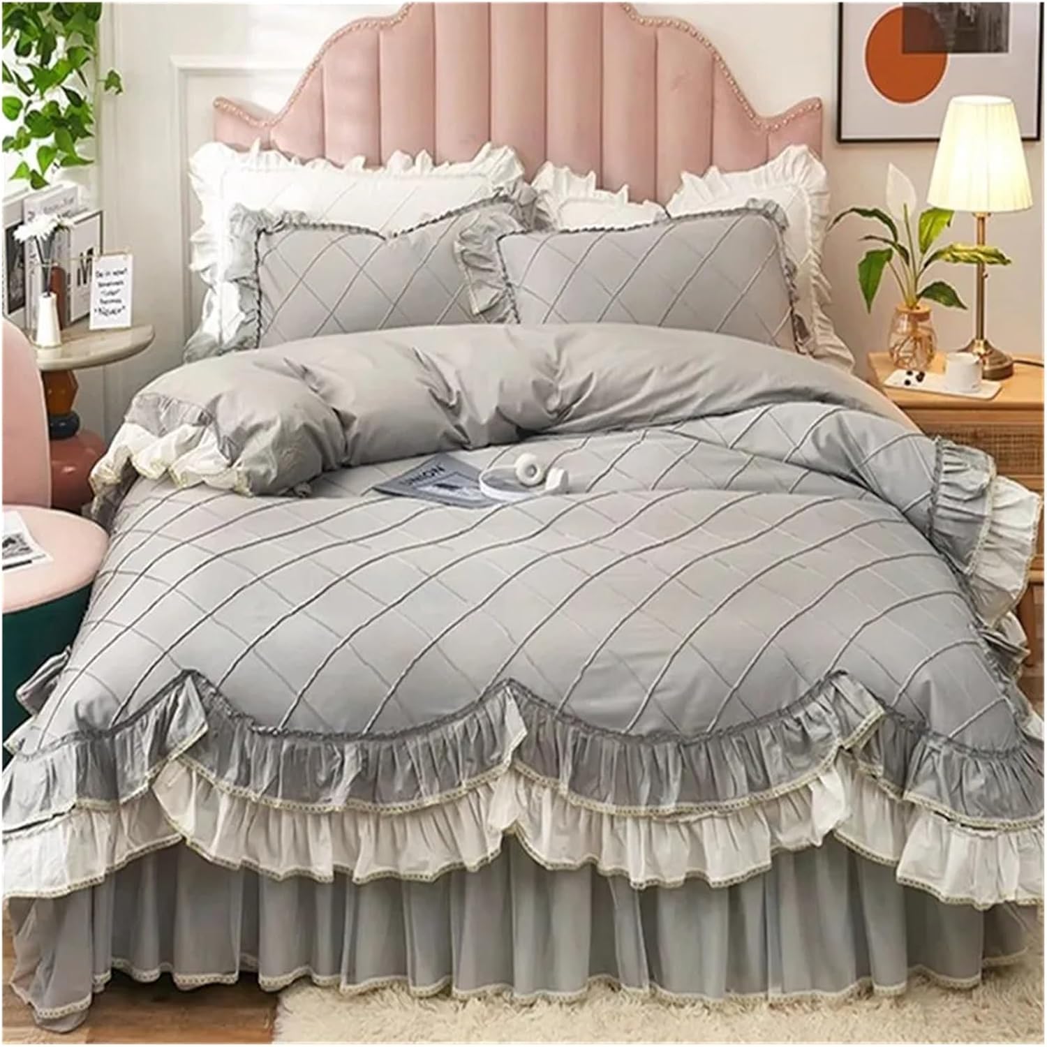 Элегантные двухслойные оборки по краям создают роскошную атмосферу в спальне. Это постельное белье в стиле шебби-шик легко впишется в любой интерьер, будь то спальня, детская или гостевая комната. Оно также добавит тепла во время просмотра телевизора, чтения, отдыха или сна.
