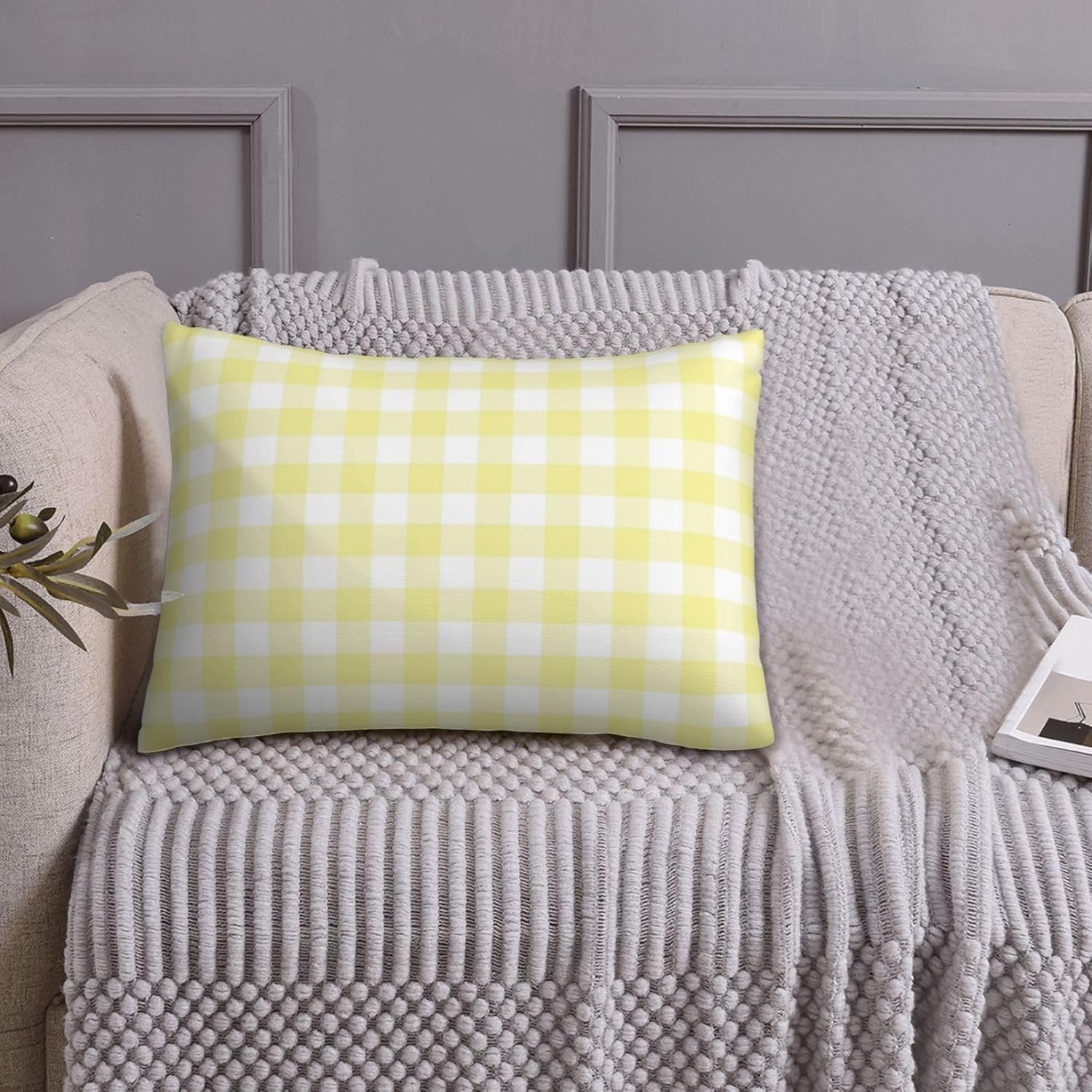 Pevtufa Чехол для подушки с клетчатым принтом Lemon Yellow Checkboard