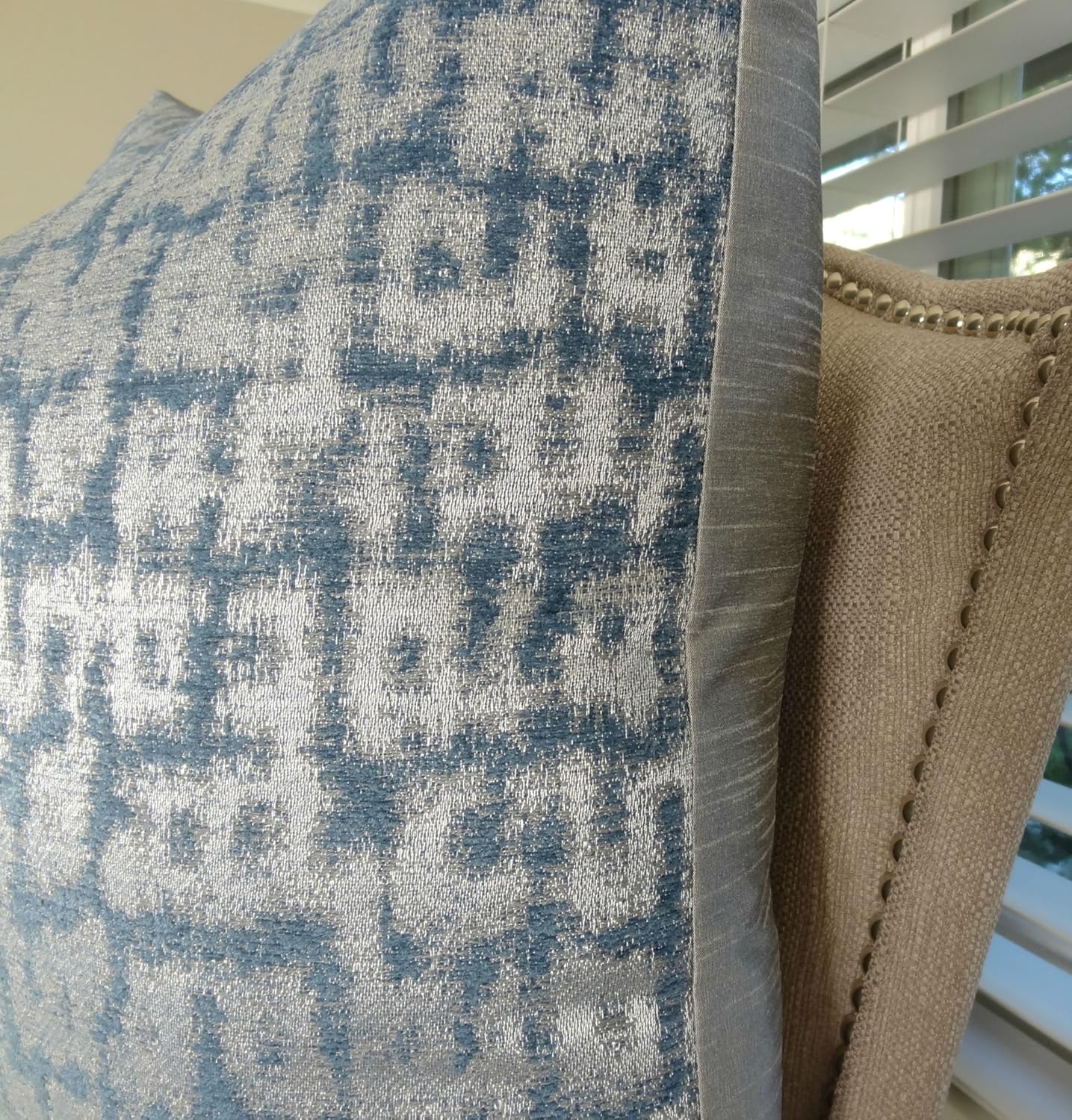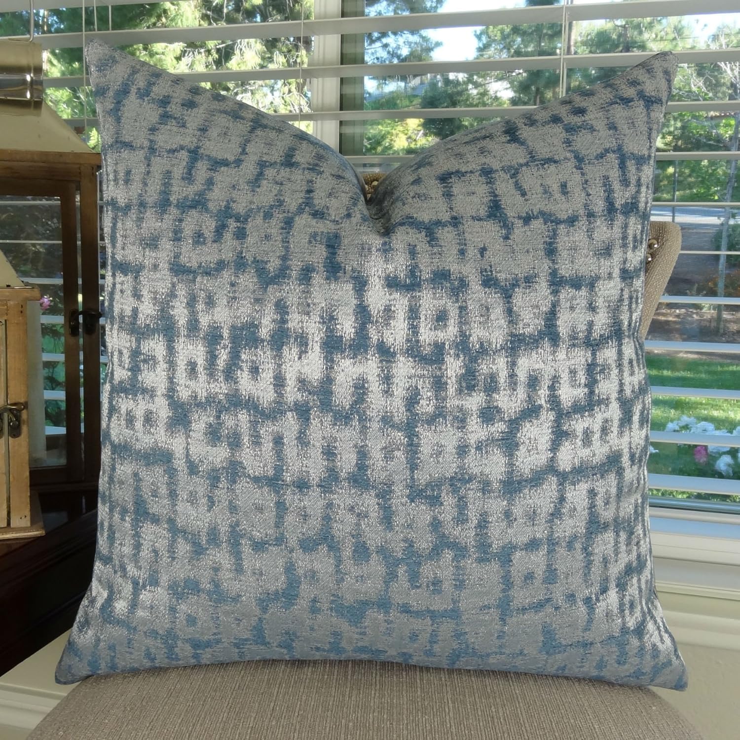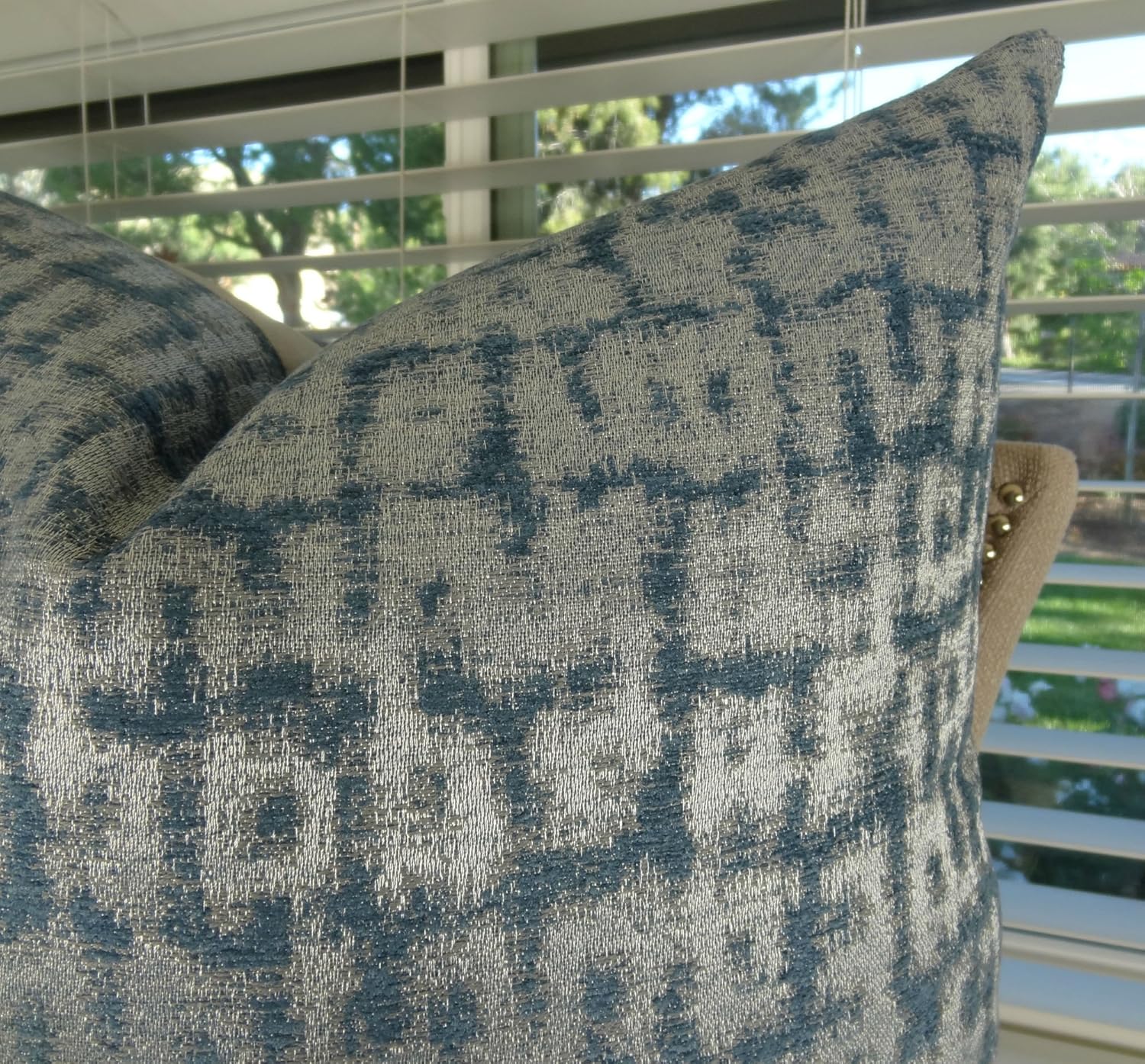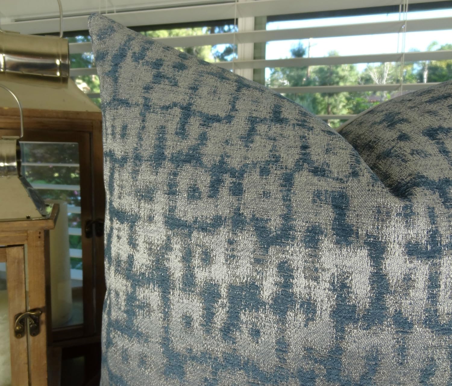 Декоративная подушка Silver Teal - Дизайнерская серебристо-голубая металлическая подушка с эффектом сине-бирюзового цвета - Серебряная декоративная подушка - Бирюзовая подушка