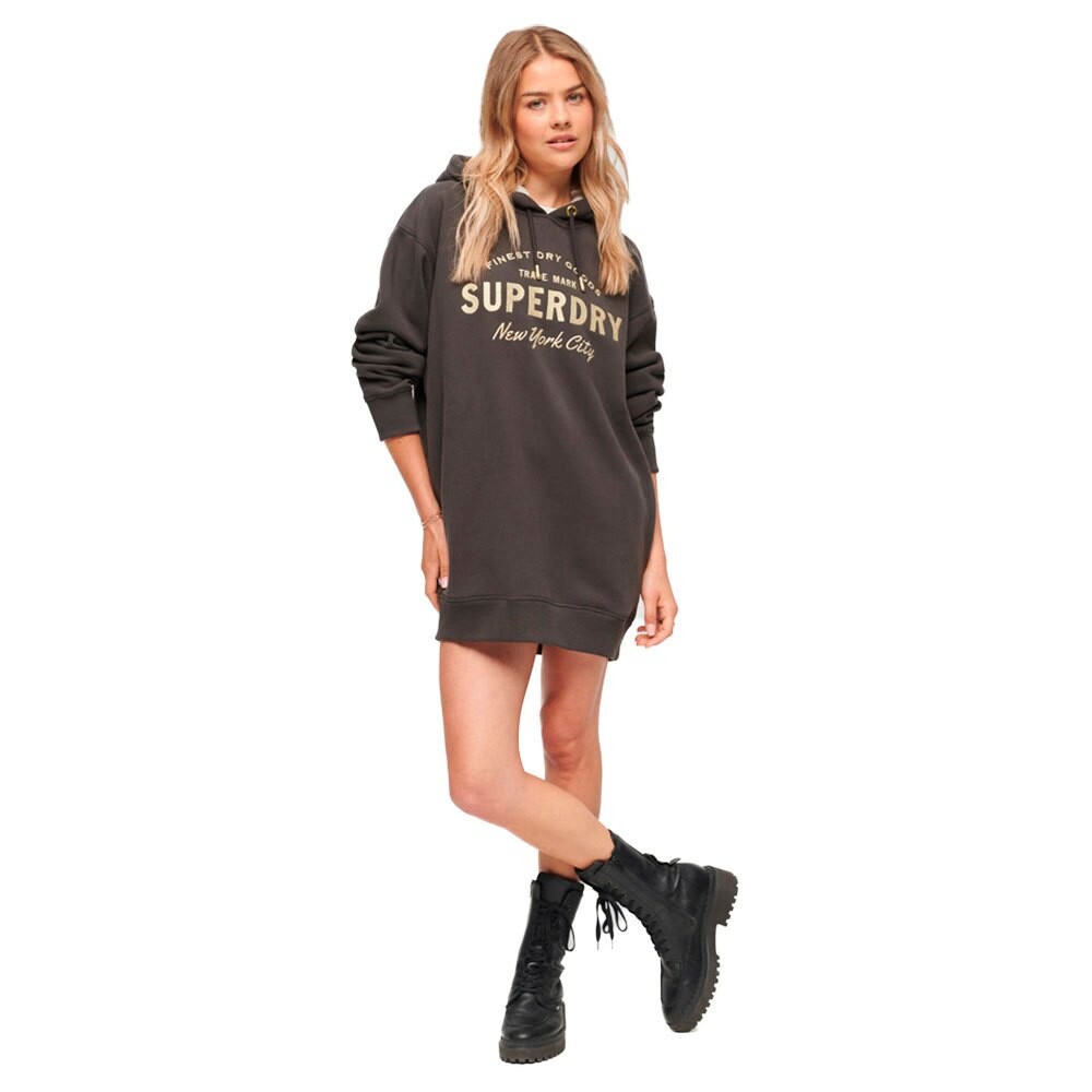 Короткое платье Superdry Luxe Metallic Logo Hood Long Sleeve, черный 6 154₽