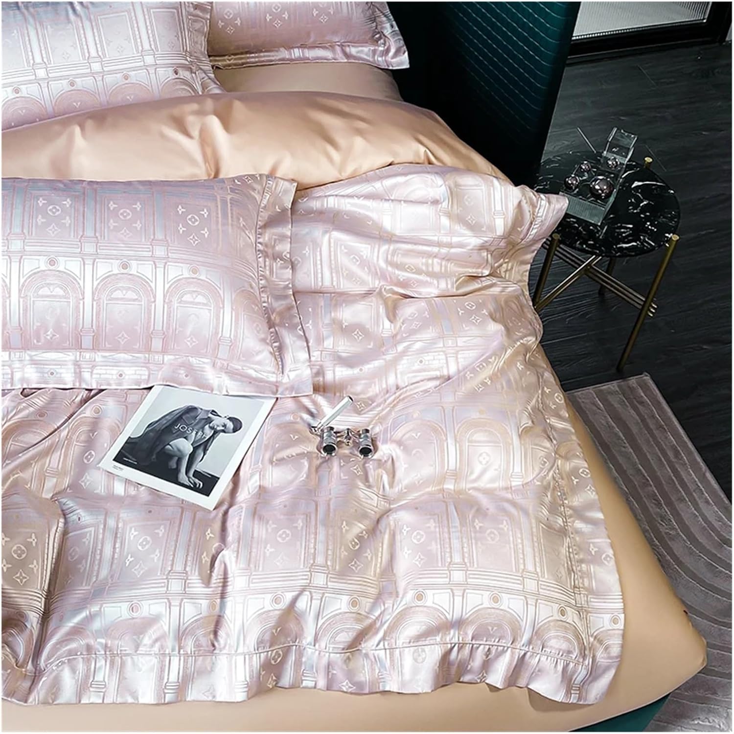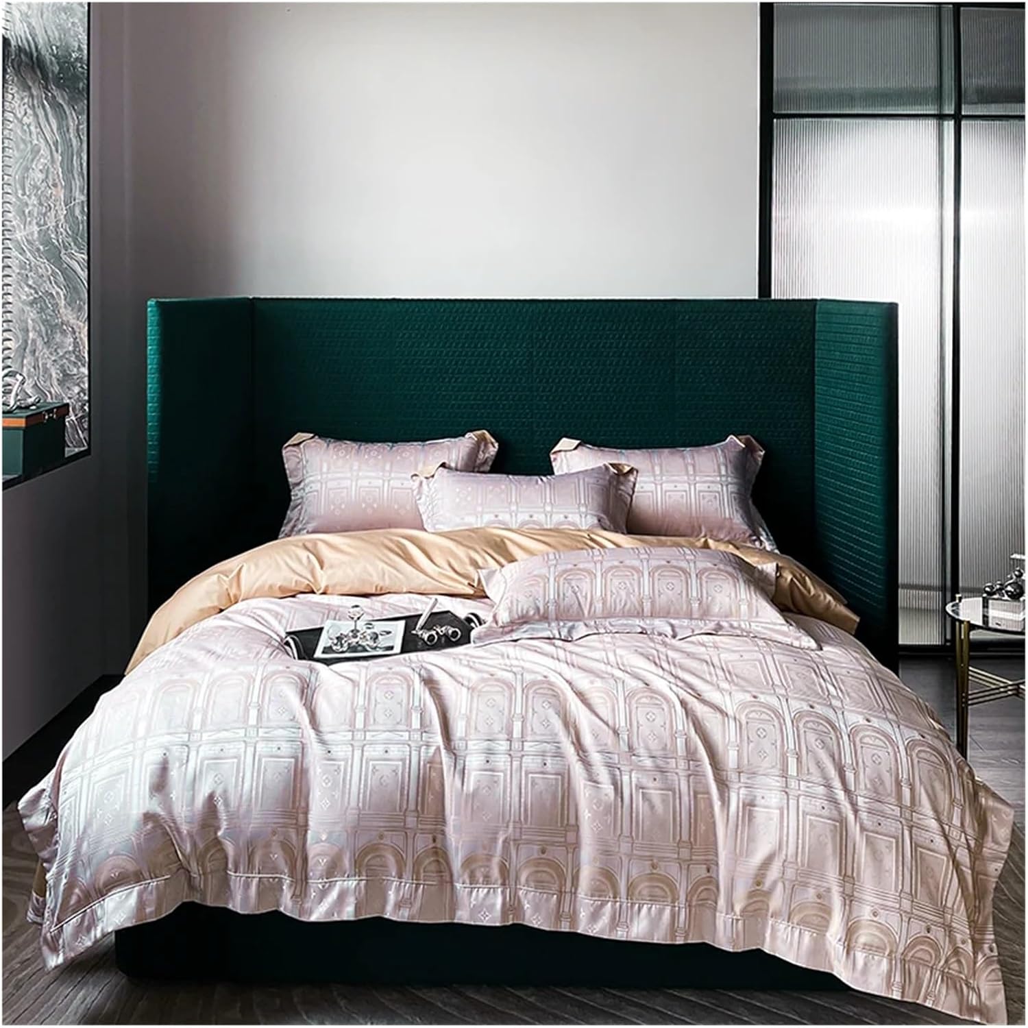 Этот комплект, предлагаемый в различных цветах, придаст целостный и свежий вид любому интерьеру спальни.