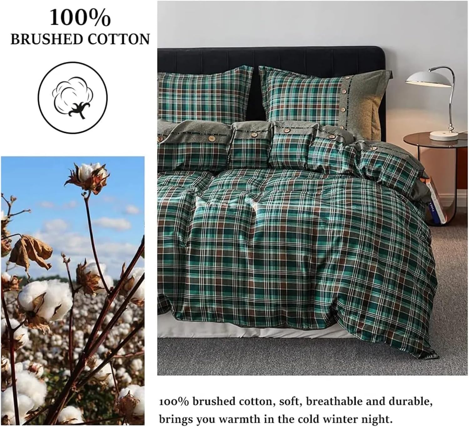 IBDRYKK Комплект постельного белья из фланели с клетчатым рисунком