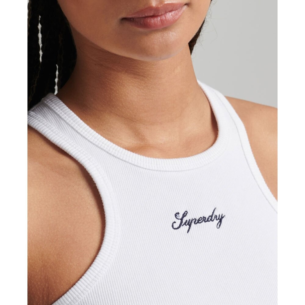Узкий крой — разработан для плотного прилегания к телу для более индивидуальный вид, овальный вырез, окантовка в рубчик, модель без рукавов, вышитый логотип Superdry.