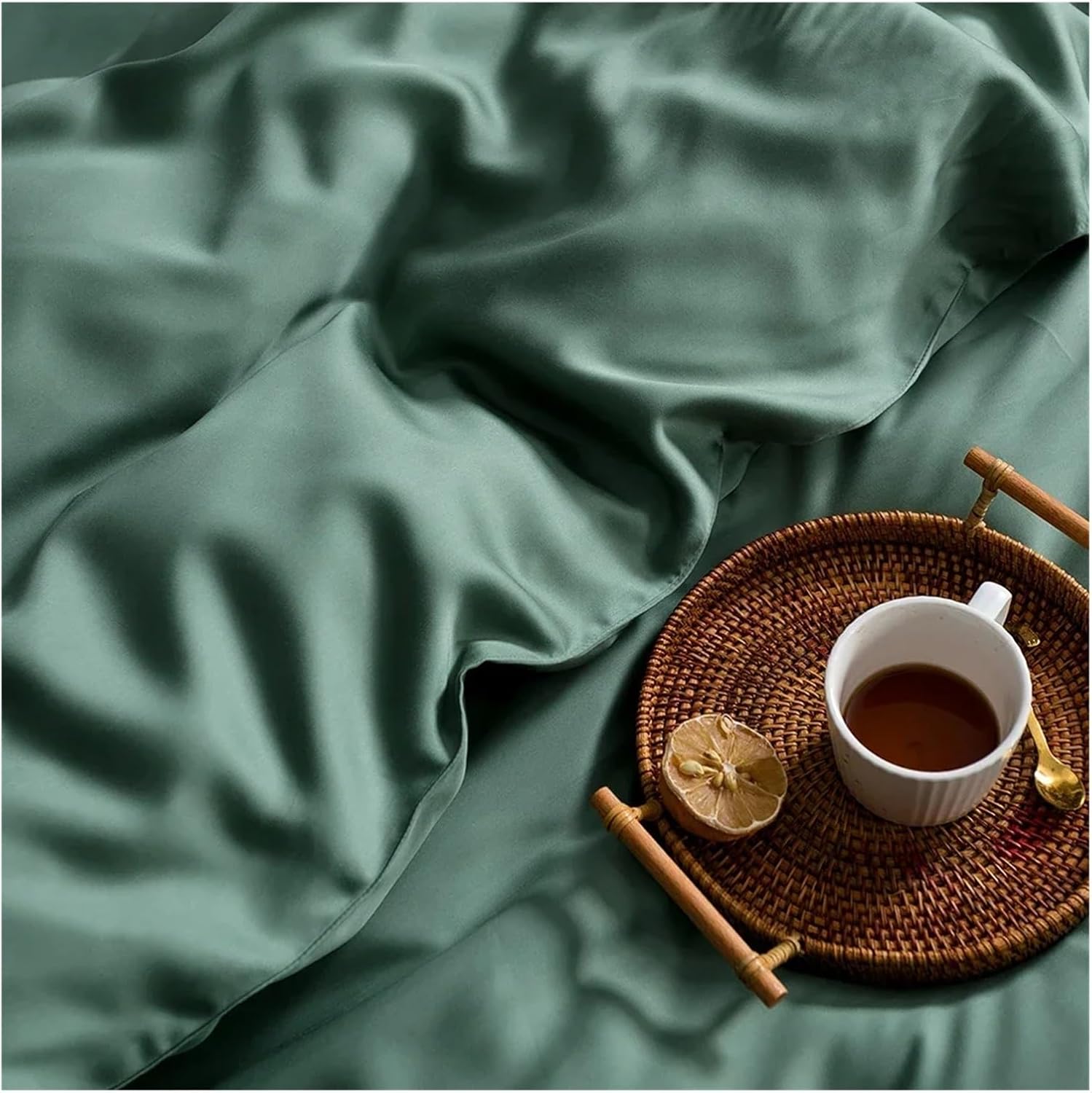 Generic Комплект постельного белья из шелка зеленого цвета