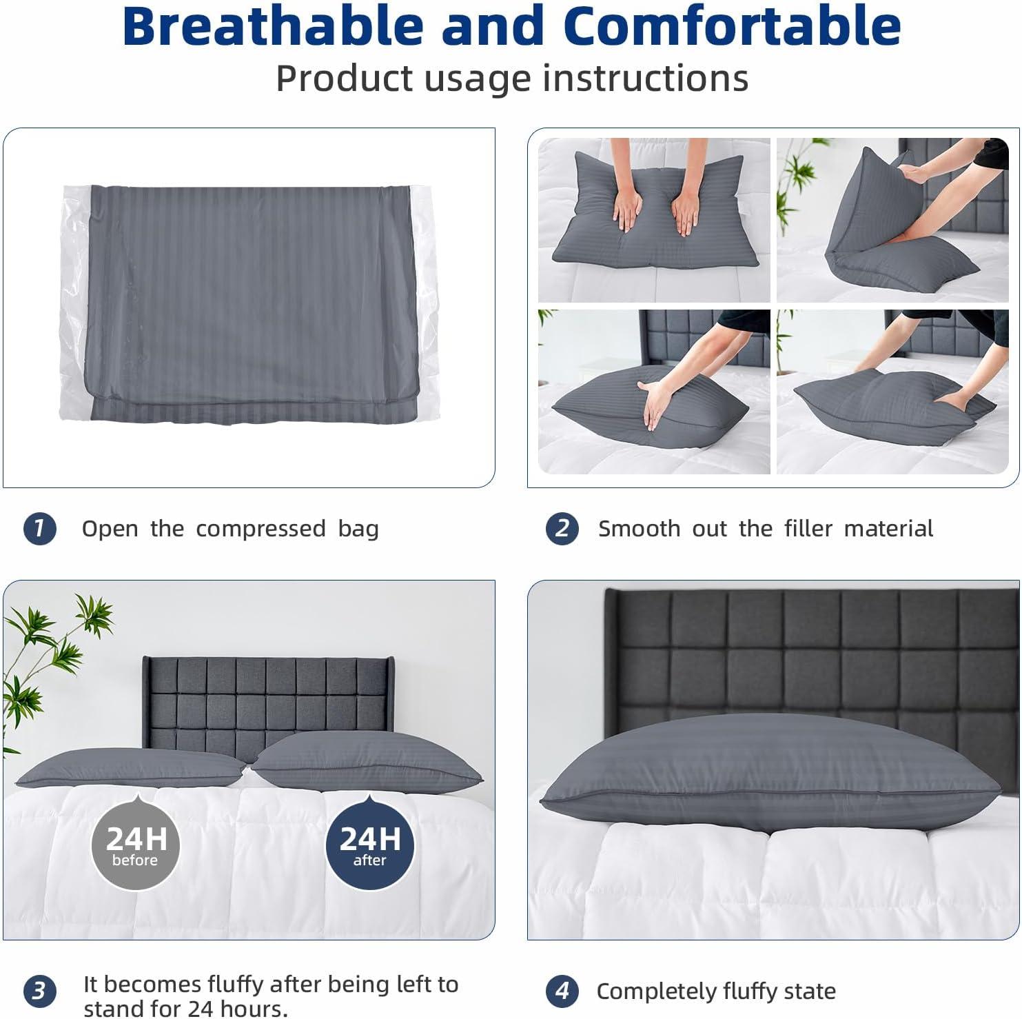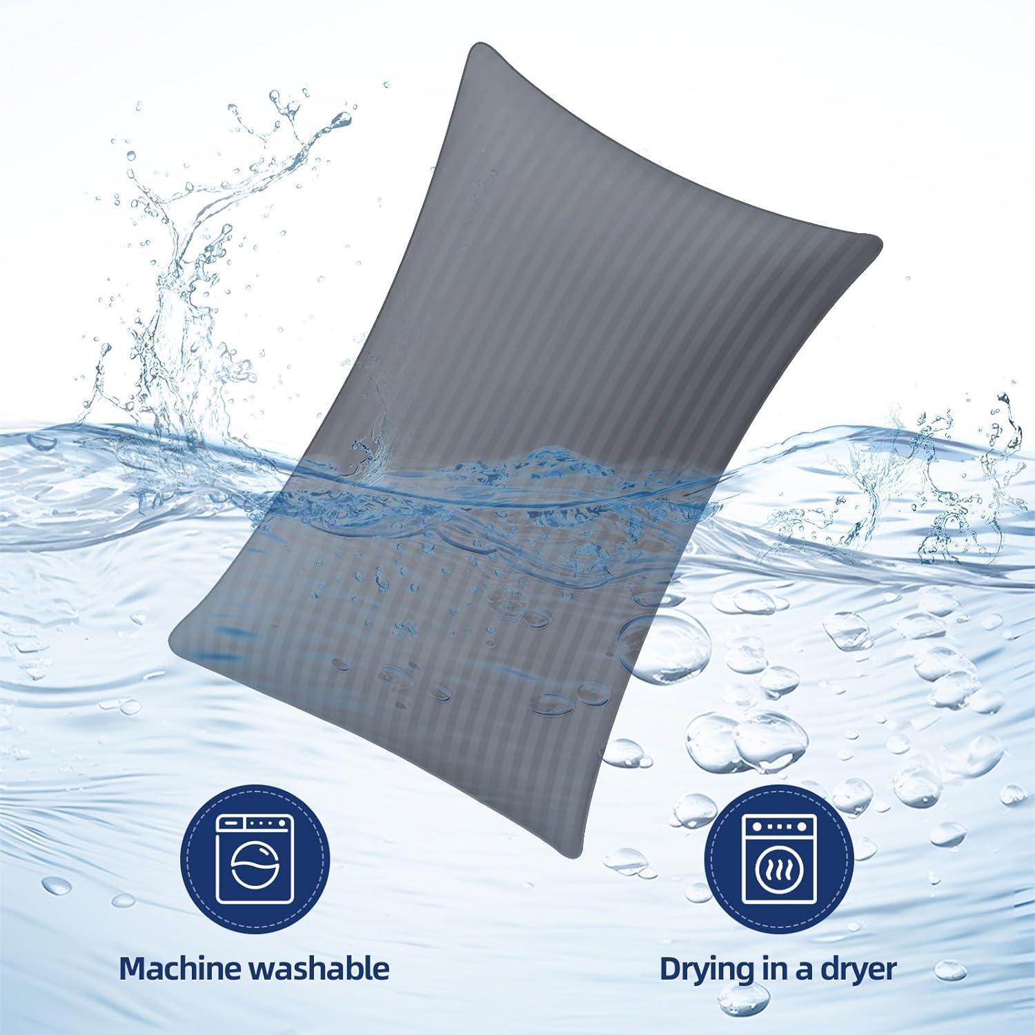 Бренд: HYLEORY Цвет: Grey Размер: Queen (pack of 2) Инструкции по уходу за изделием: не гладить и не подвергать химической чистке. можно стирать в стиральной машине при низкой температуре. Материал: серый полиэстер в вертикальную полоску Наполнитель: белый полиэстер с вертикальной полоской Жесткость: середина Особенности: дышащий, с поддержкой шеи, можно стирать Тип подушки: подушка для кровати Форма: прямоугольный