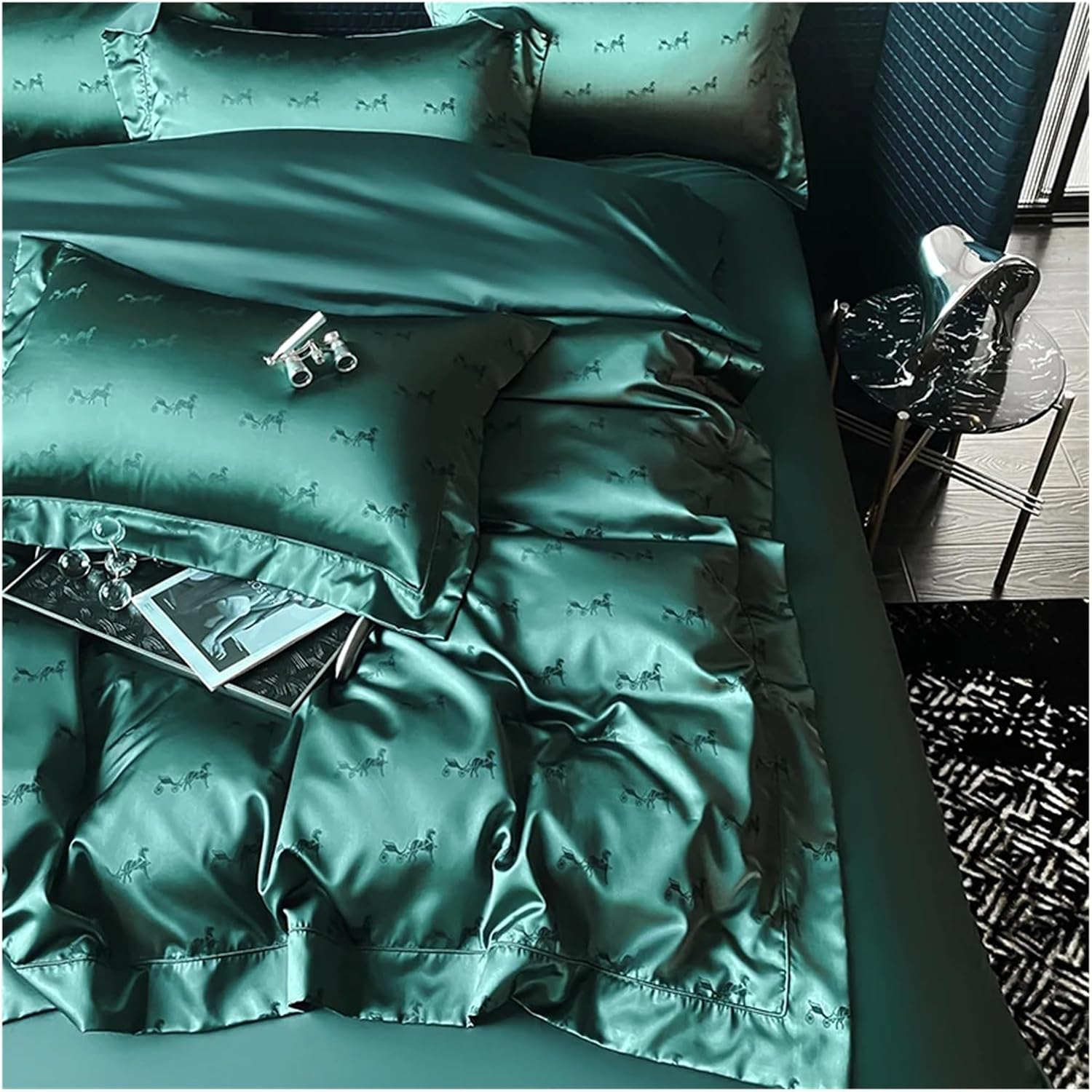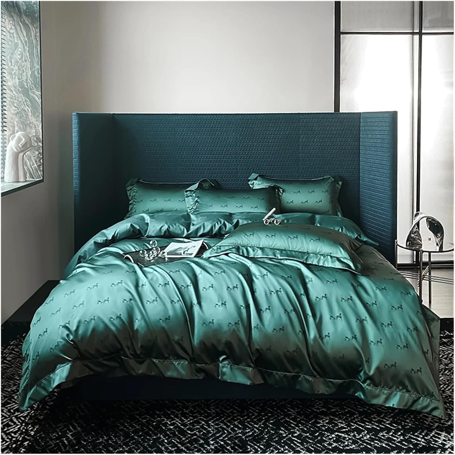 Этот комплект, предлагаемый в различных цветах, придаст целостный и свежий вид любому интерьеру спальни.