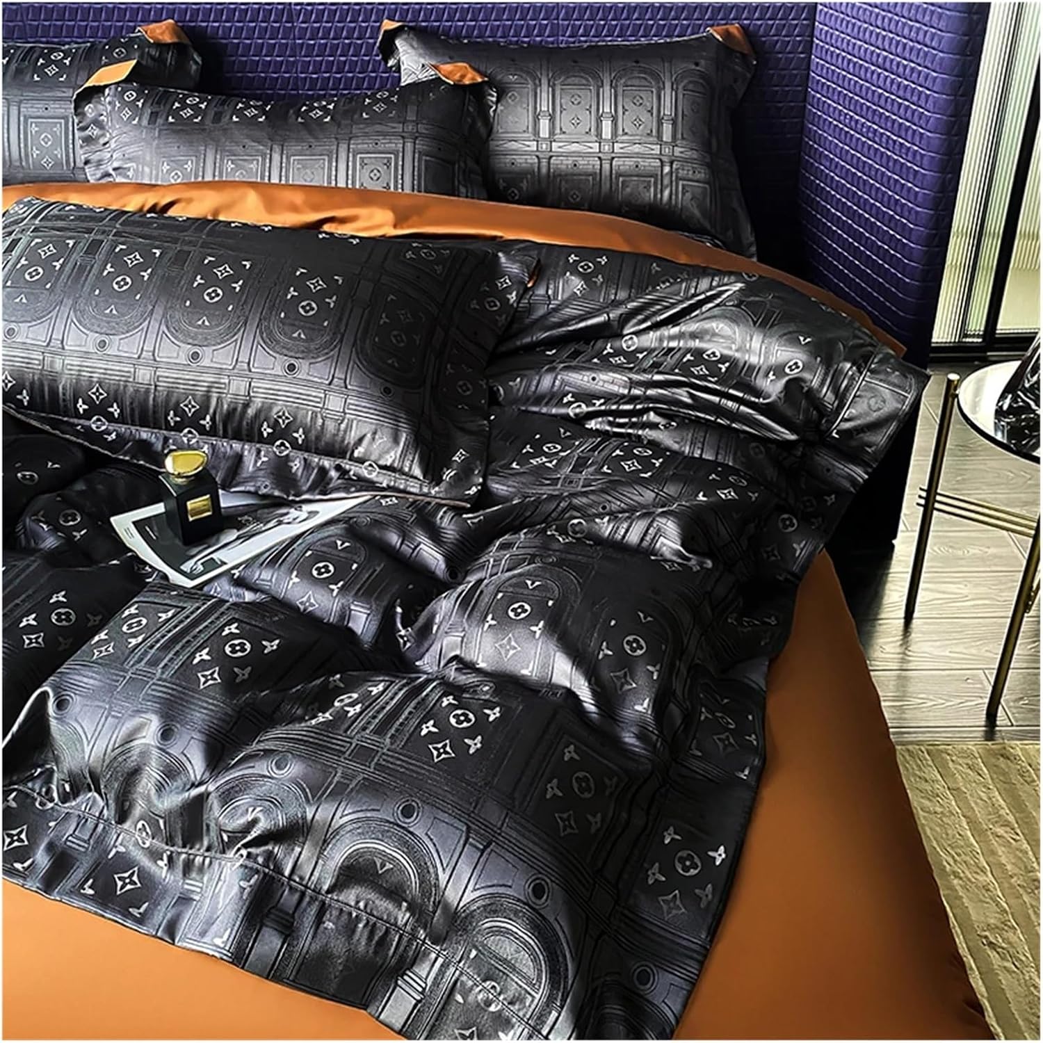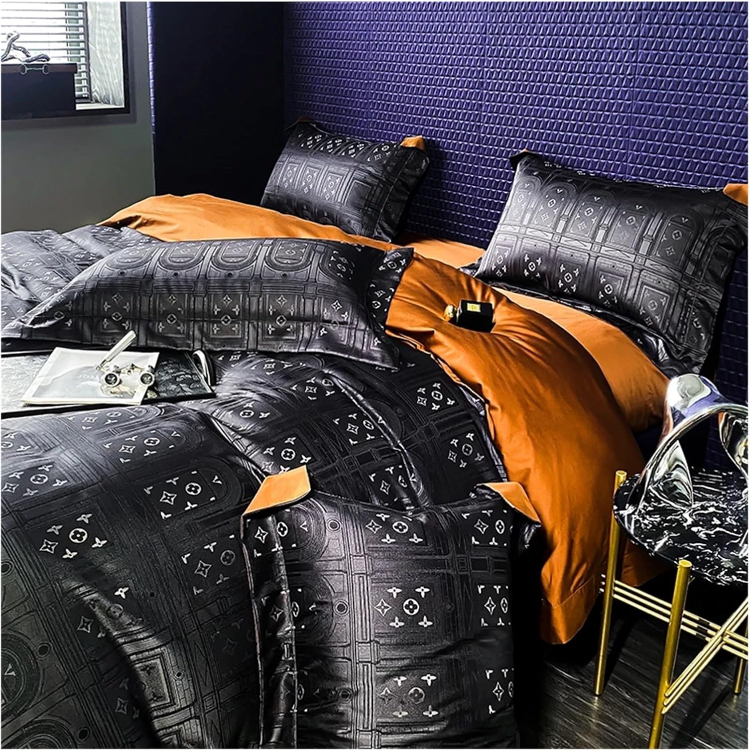 Этот комплект, предлагаемый в различных цветах, придаст целостный и свежий вид любому интерьеру спальни.