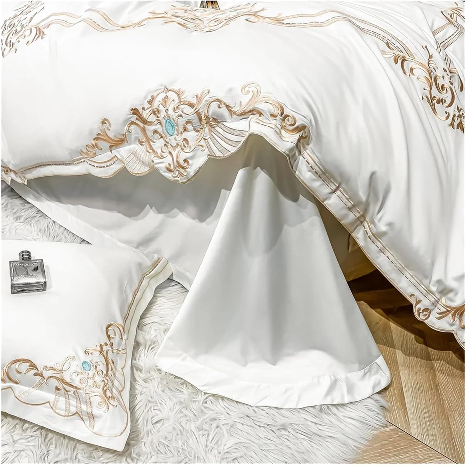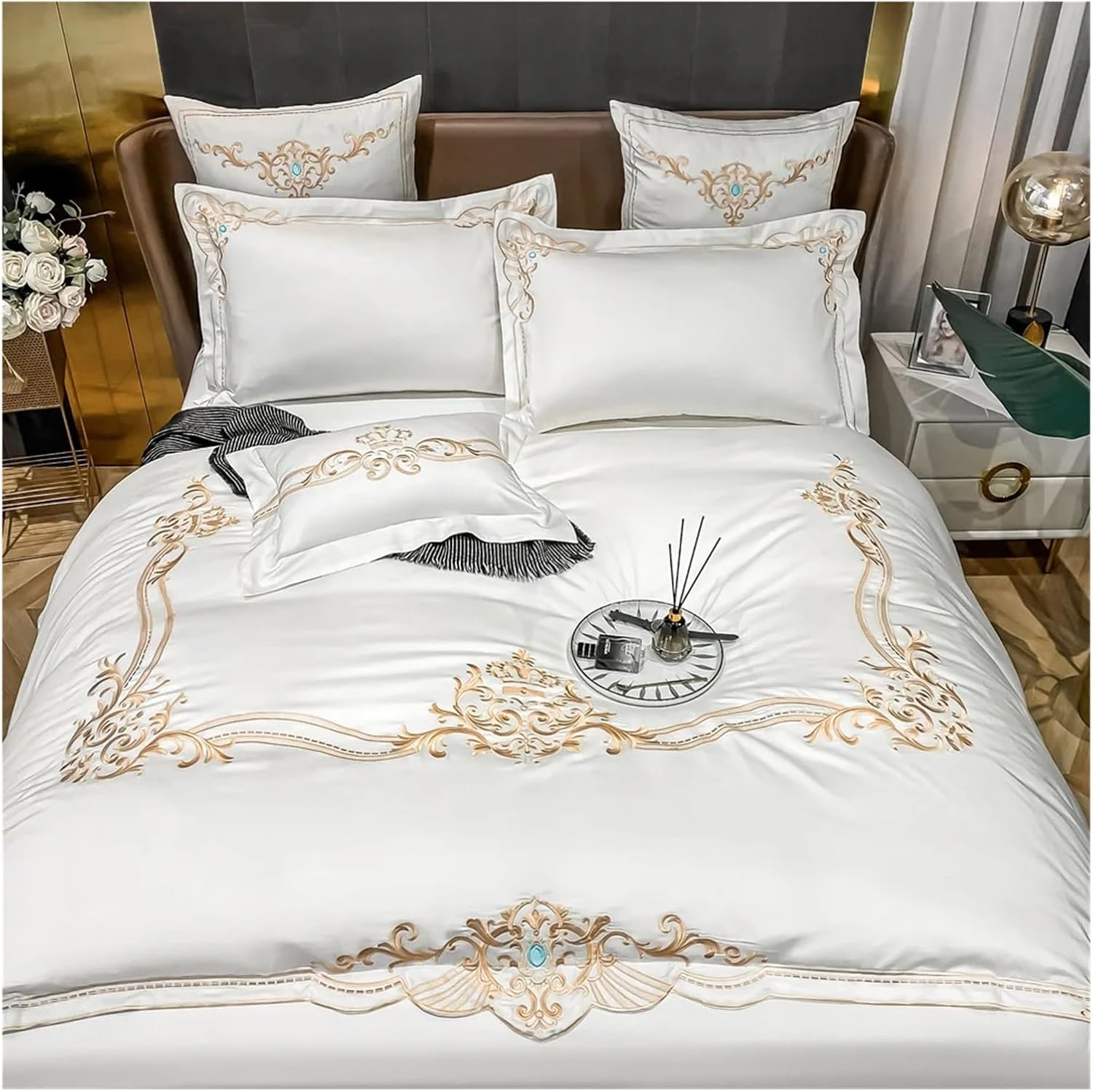 Этот комплект, предлагаемый в различных цветах, придаст целостный и свежий вид любому интерьеру спальни.