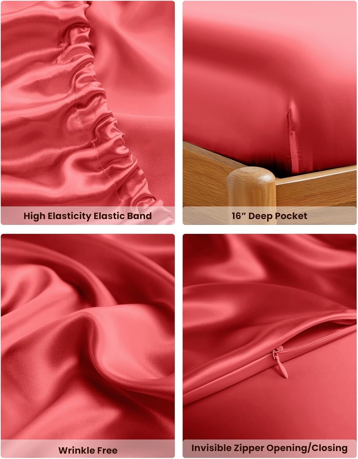 ОТЛИЧНЫЙ ВЫБОР ПОДАРКА: Тщательно упакованный в подарочную коробку, комплект шелковых простыней станет идеальным подарком вашим близким на любые праздники, а также на особые случаи, такие как свадьбы, девичники и вечеринки по случаю рождения ребенка, дни рождения, годовщины и т. д. Мы предлагаем широкий выбор цветов и размеров на любой вкус.