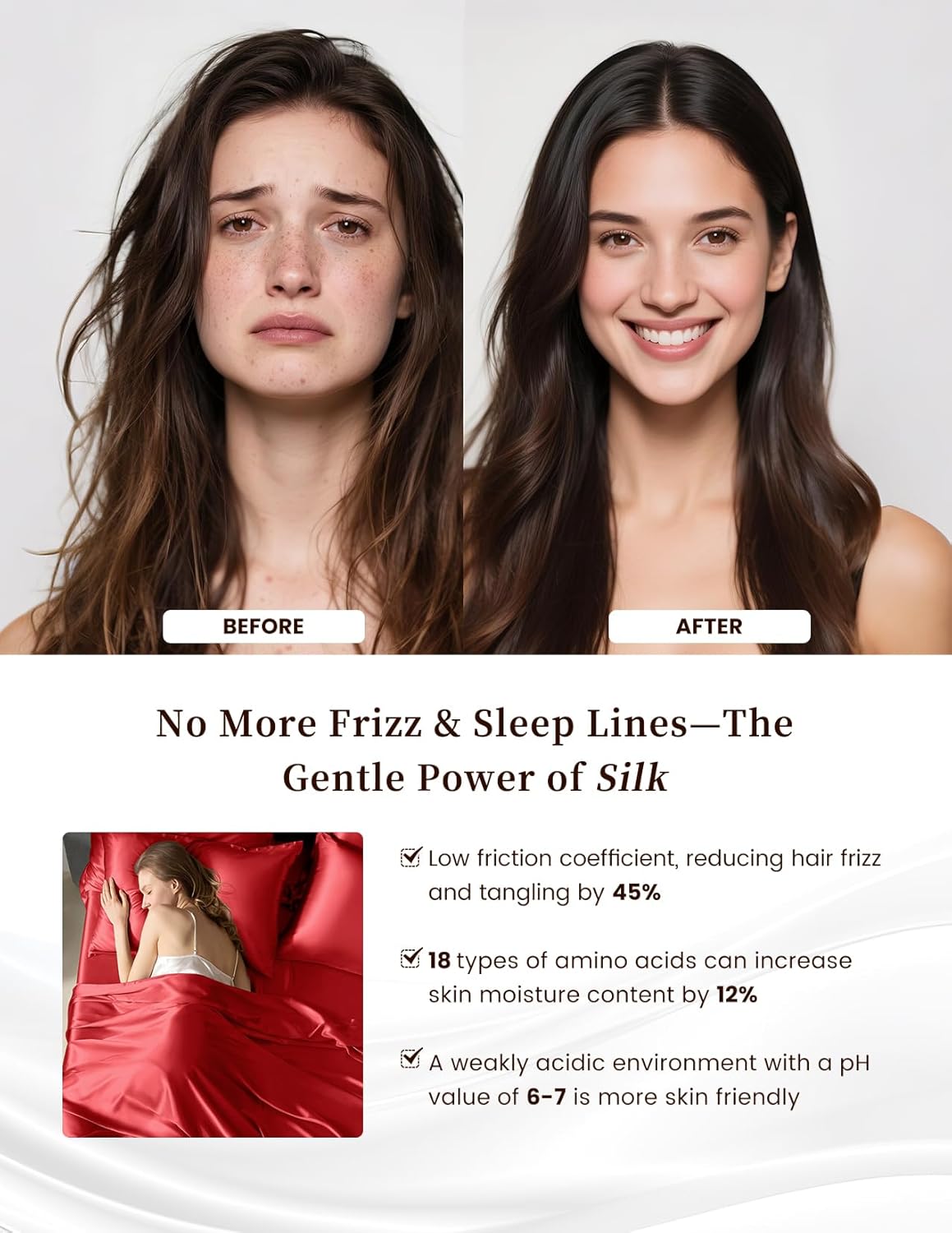 ПРЕИМУЩЕСТВА ДЛЯ ВОЛОС, КОЖИ И СНА: Натуральный шёлк позволяет волосам и коже легко скользить по поверхности подушки. Уменьшение трения предотвращает ломкость волос и способствует гладкости кожи. Удобный и дышащий, чистый шёлк тутового дерева также является естественным терморегулятором, помогая поддерживать правильную температуру тела.