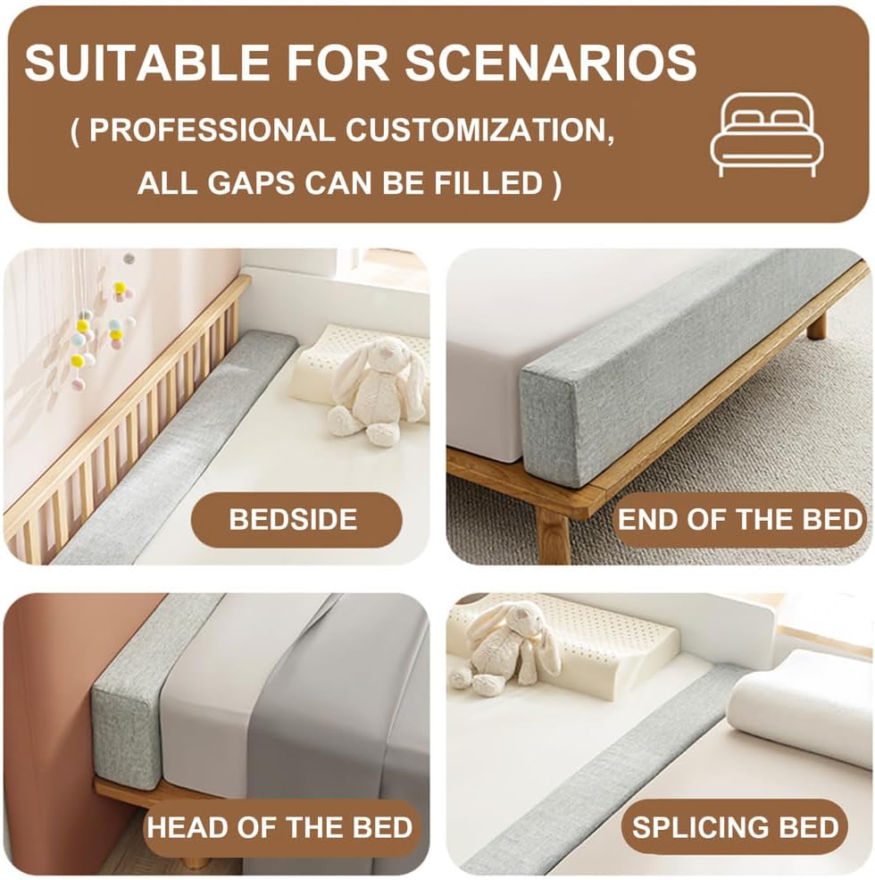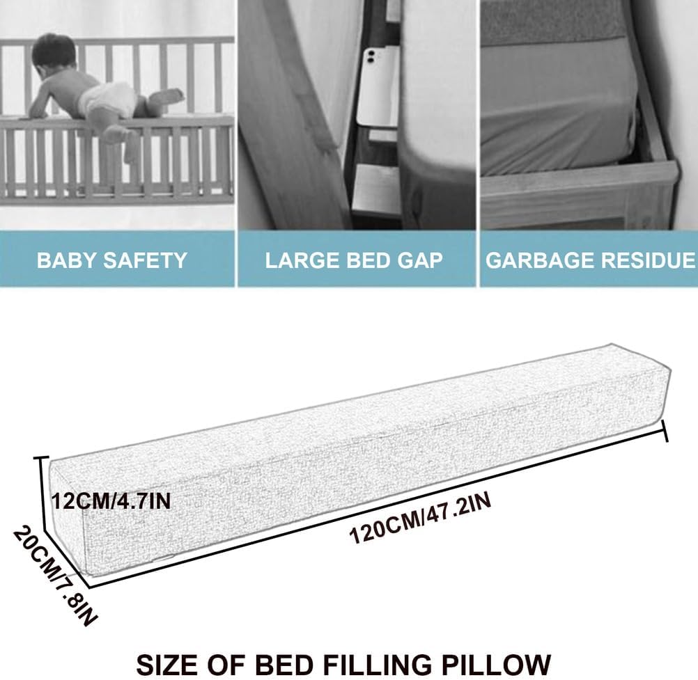 МНОГОФУНКЦИОНАЛЬНАЯ ПОДУШКА: Прямоугольная подушка для зазора между матрасом и изголовьем кровати или между кроватью и стеной. Больше не нужно беспокоиться о падении мобильных телефонов, очков и других предметов из-под кровати. Её также можно использовать в качестве подушки-наполнителя между кроватью и кроватью, что делает прогулки более безопасными для детей, не беспокоясь о том, что ребёнок упадёт или застрянет.