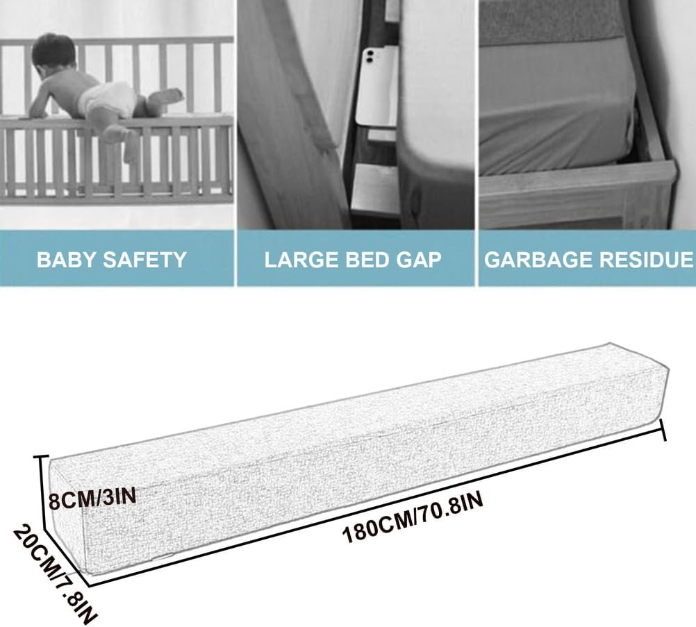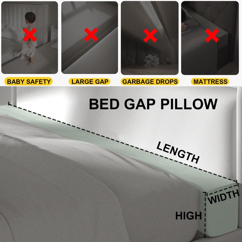МНОГОФУНКЦИОНАЛЬНАЯ ПОДУШКА: Прямоугольная подушка для кровати уменьшает зазор между матрасом и изголовьем или между кроватью и стеной, избавляя от необходимости беспокоиться о падении мобильных телефонов, очков и других предметов из-под спального места. Её также можно использовать в качестве подушки-наполнителя между кроватью и кроватью, обеспечивая детям безопасность при ходьбе, не беспокоясь о том, что ребёнок упадёт или застрянет.