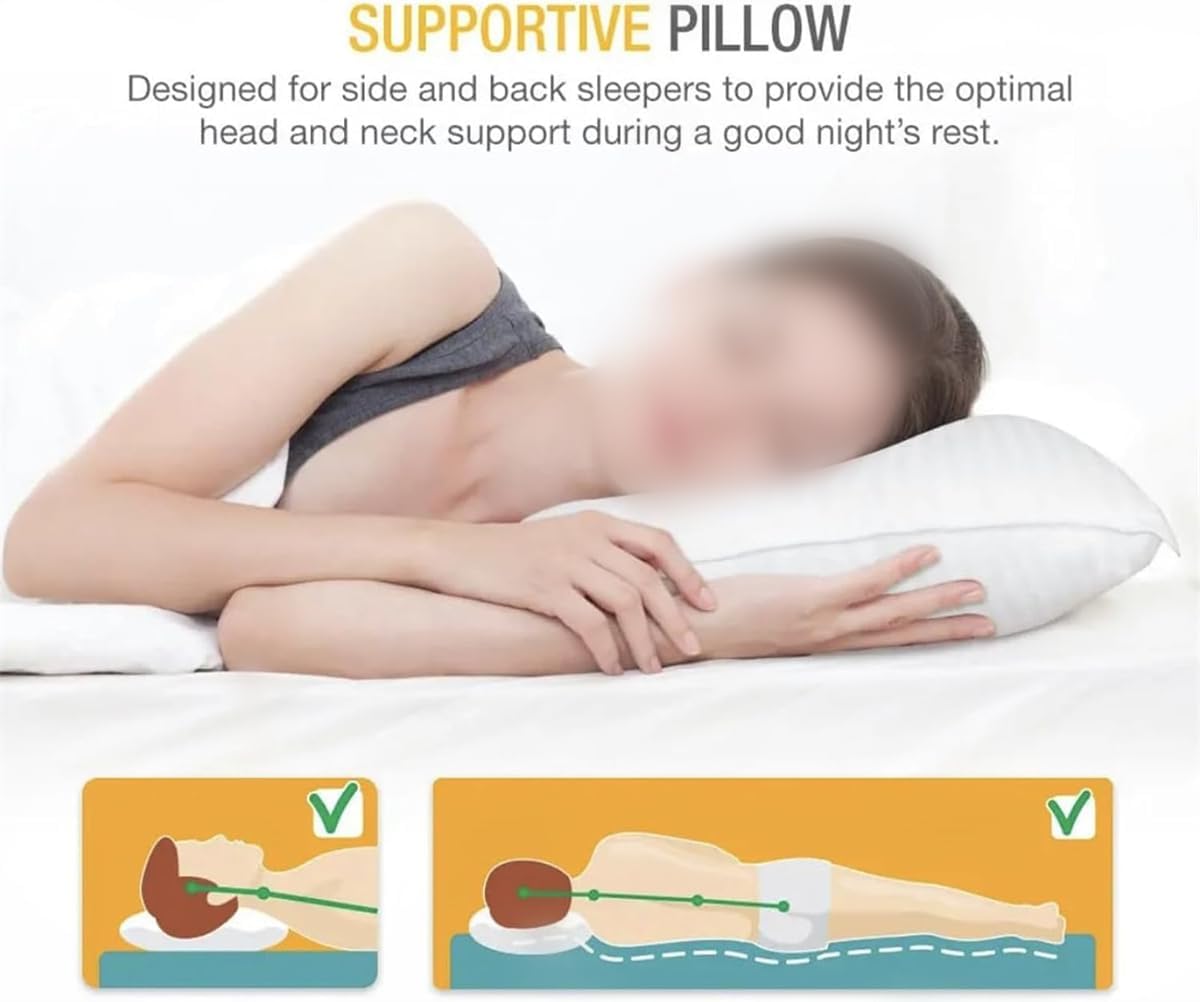 Дышащая и прохладная: чехол подушки мягкого гостиничного класса изготовлен из дышащей, влагоотводящей ткани, которая сохраняет прохладу — больше не нужно просыпаться в поту, внутренний наполнитель обеспечивает циркуляцию воздуха, обеспечивая комфортную температуру всю ночь