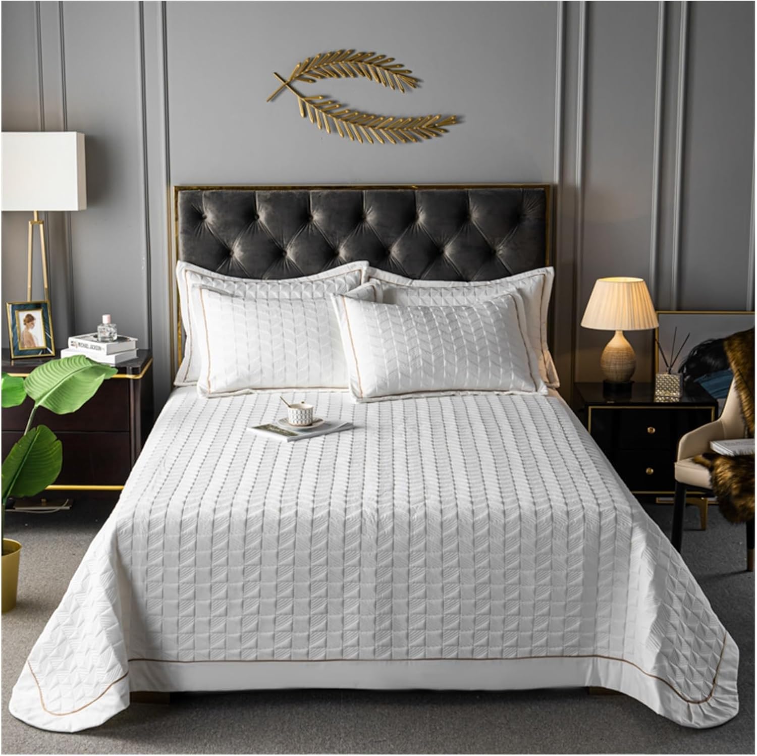 Generic Комплект постельного белья стеганый хлопковый с покрывалом White