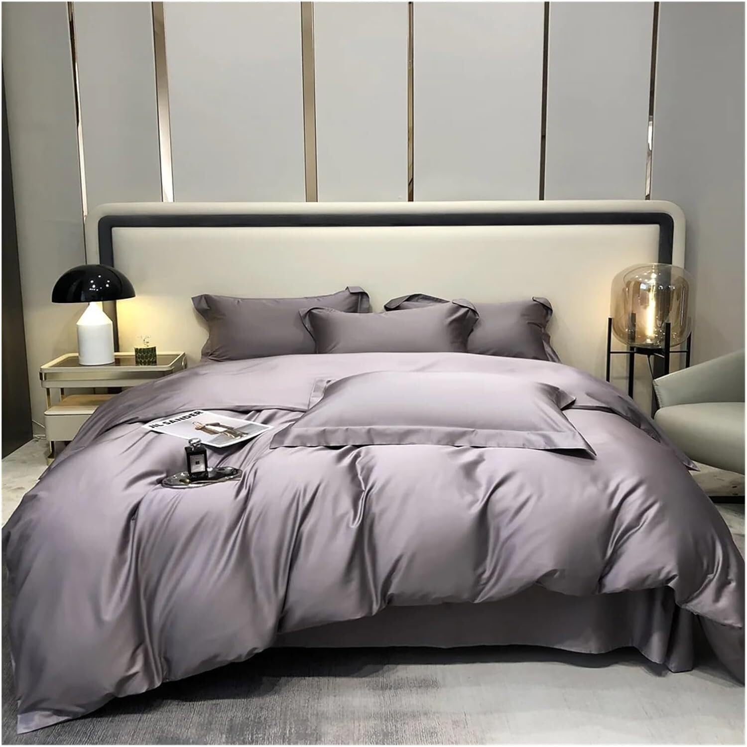 ВНЕ ВРЕМЕНИ: Этот элегантный комплект постельного белья, доступный в различных однотонных цветах и ​​размерах, невероятно мягкий и может похвастаться легким мерцанием благодаря сатиновому плетению.