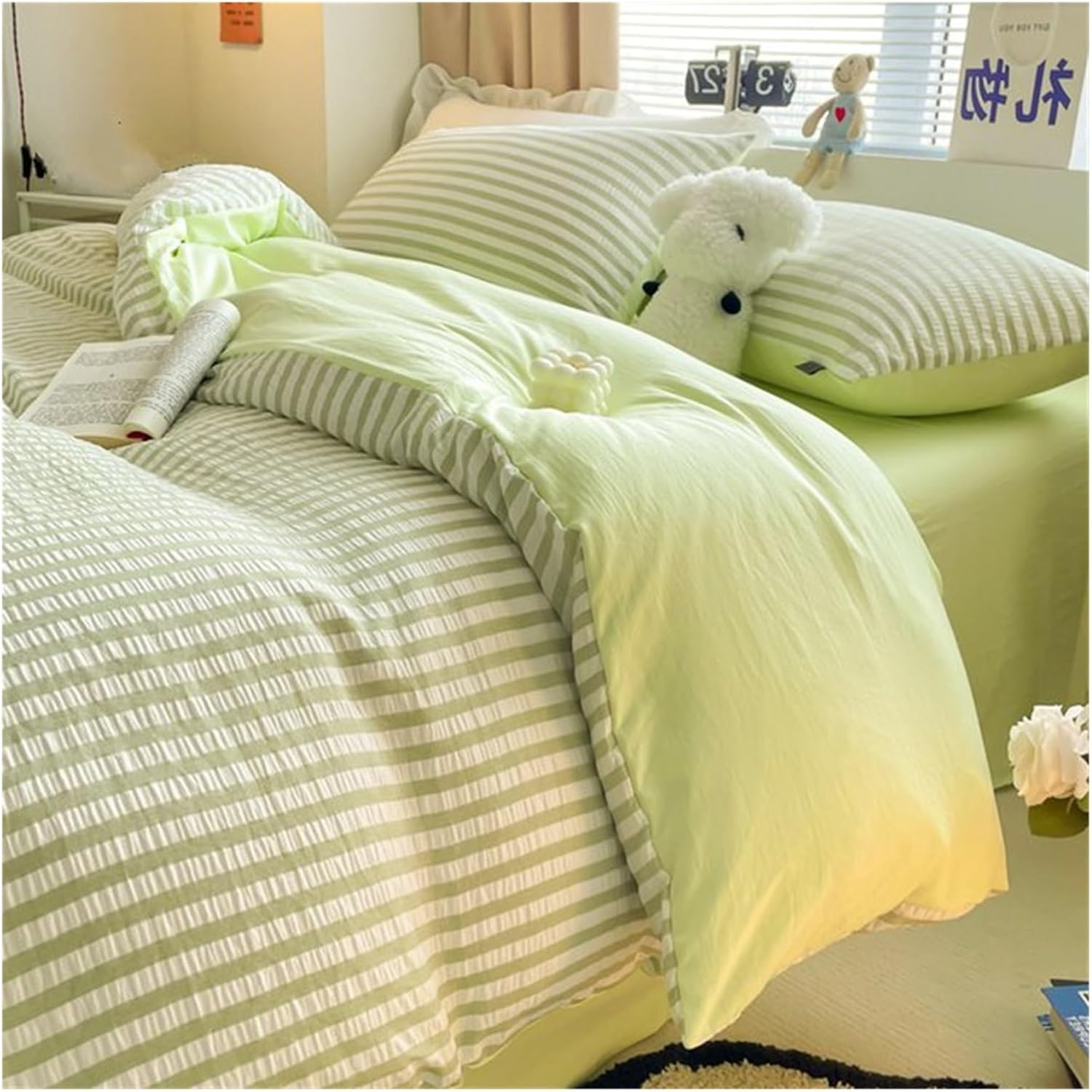Generic Комплект постельного белья с полосатым принтом Yellow