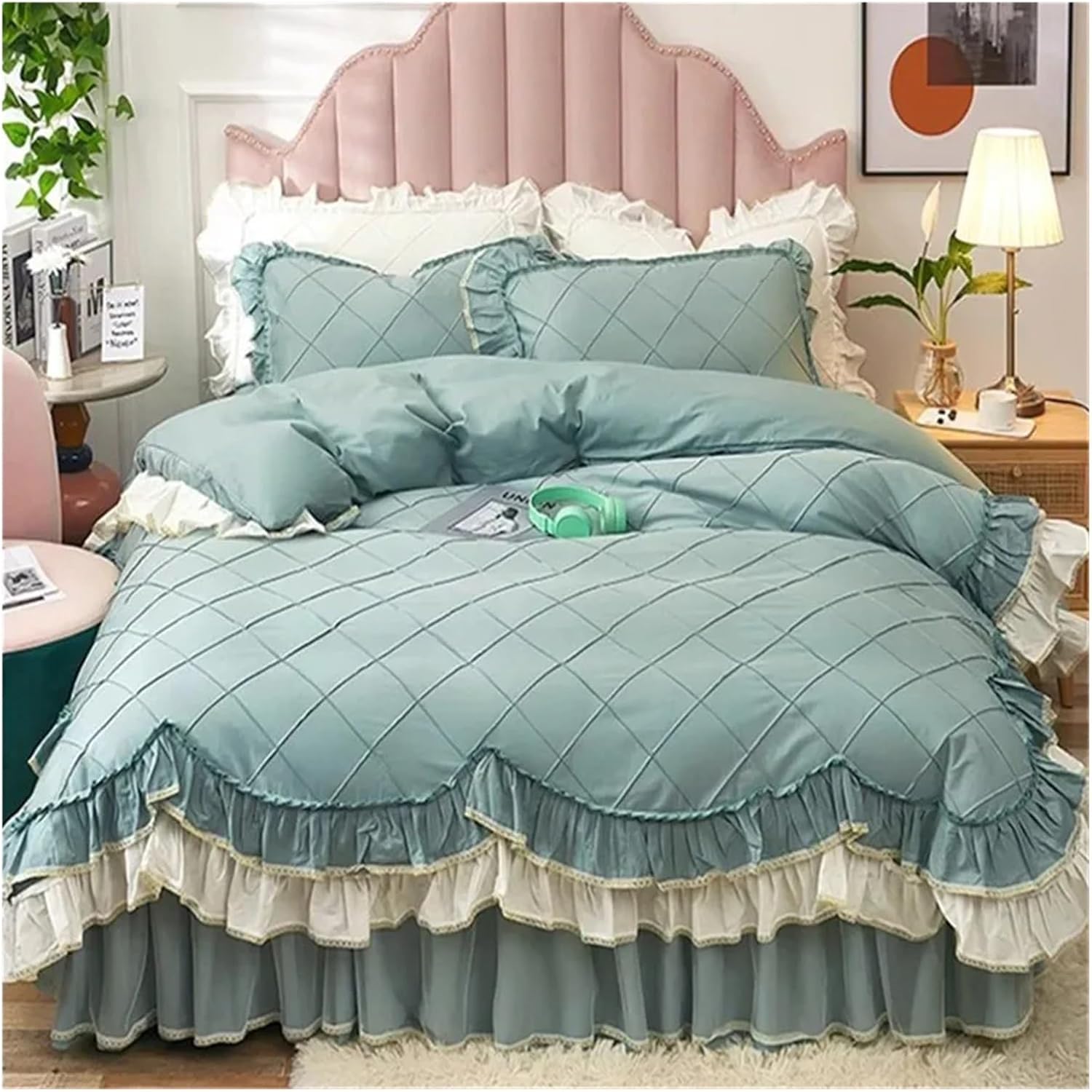 Элегантные двухслойные оборки по краям создают роскошную атмосферу в спальне. Это постельное белье в стиле шебби-шик легко впишется в любой интерьер, будь то спальня, детская или гостевая комната. Оно также добавит тепла во время просмотра телевизора, чтения, отдыха или сна.