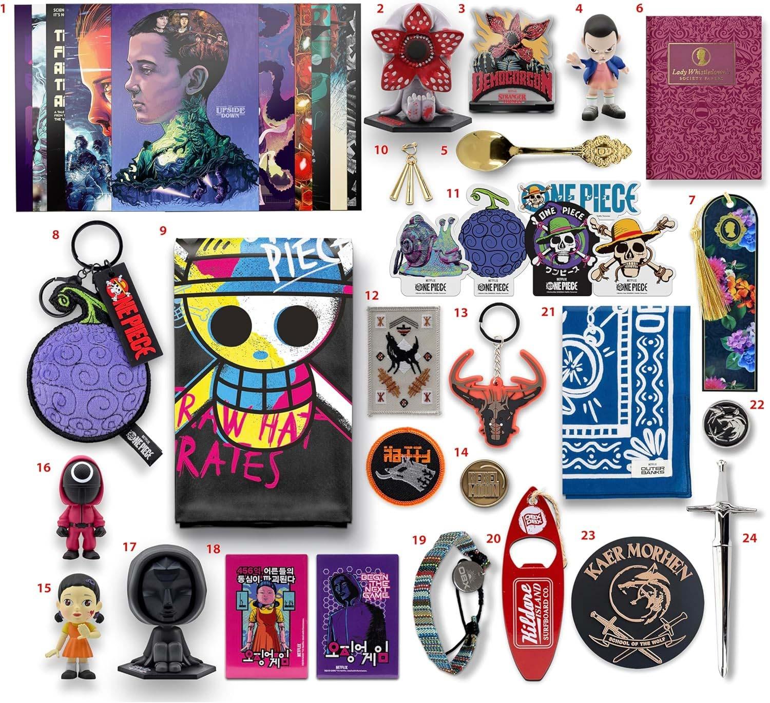 Погрузитесь в завораживающий мир Netflix с помощью подарка премиум-класса, который уникальным образом сочетает в себе суть самых любимых игр Netflix. От практичных предметов первой необходимости до редких предметов коллекционирования — каждый сувенир представлен в индивидуальной упаковке, что обеспечивает незабываемый совместный опыт распаковки.