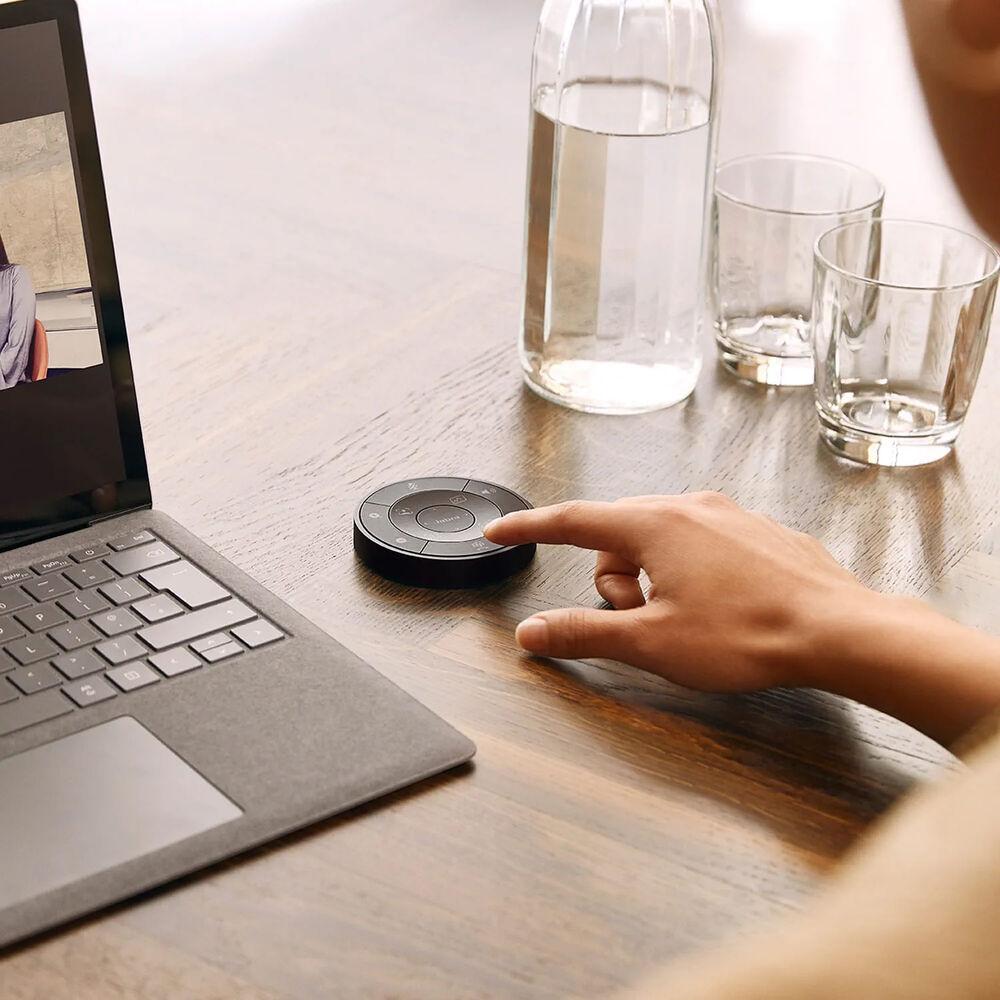 Доступ к предустановкам и элементам управления PTZ, регулировка громкости и многое другое с помощью пульта дистанционного управления Jabra PanaCast 50, разработанного для интуитивного и простого управления в помещении.