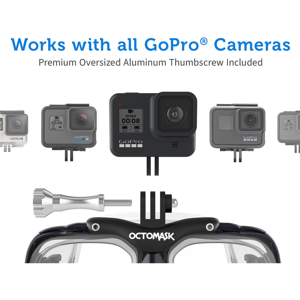 Прозрачная безрамная маска Octomask для камеры GoPro — это маска для подводного плавания с аквалангом, на которую можно установить камеру GoPro. Она позволяет снимать погружение или плавание с маской и трубкой без помощи рук и добавляет реалистичный вид от первого лица к вашим подводным съемкам.