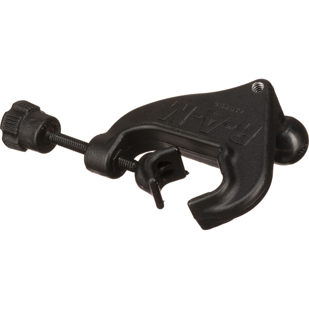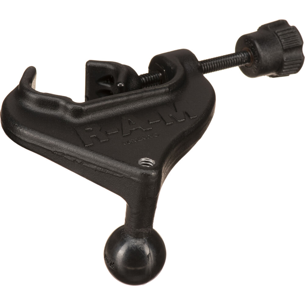 Основание зажима RAM Yoke с резиновым шариком 1 дюйм и метчиком 1/4-20 дюймов от RAM MOUNTS имеет резьбу 1/4-20 дюймов на задней стороне шарика 1 дюйм. Зажим подходит для направляющих диаметром от 0,625 дюйма до максимум 1,25 дюйма. Резиновый шарик 1 дюйм расположен под прямым углом к плоскости крепления, поэтому при соединении с направляющей шарик располагается параллельно ей.