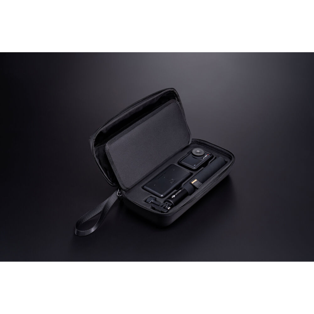 Храните камеру Osmo Action 3, 4 или 5 Pro и аксессуары в этой сумке для переноски от DJI. Сумка имеет жесткий корпус и многослойные внутренние отделения для хранения, в которых поместятся селфи-палка, микрофонная система с зарядным чехлом и камера. Застежка-молния обеспечивает надежную фиксацию содержимого, а встроенный ремешок на запястье обеспечивает легкую транспортировку.