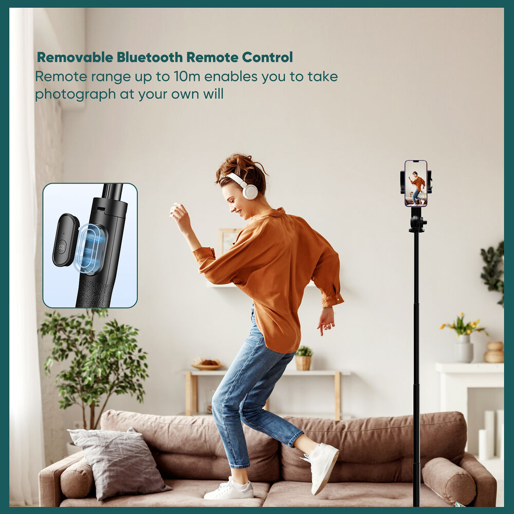 5-футовая многофункциональная палка для селфи Apexel APL-D10 имеет семь сегментов, которые складываются до удобной 12 дюймов. Она совместима с Android и iPhone и поставляется с держателем для обоих телефонов. Палка оснащена Bluetooth-спуском с питанием от аккумулятора. Она изготовлена из алюминиевого сплава и АБС-пластика.
