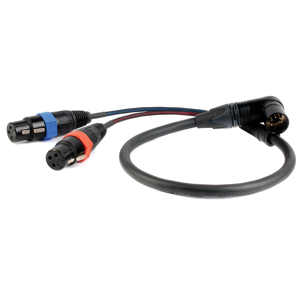 Стереокабель CAXSTEX5MR Dual 3-контактный XLR-F - 5-контактный угловой XLR-M (24 дюйма) от Remote Audio — это стереоаудиокабель, который можно использовать в качестве входного кабеля для цифровой кинокамеры Arri Alexa. Он имеет длину 24 дюйма и оснащен парой 3-контактных разъемов XLR (мама) на одном конце и прямоугольным 5-контактным разъемом XLR (папа) на другом. 5-контактный разъем идеально расположен для Alexa.