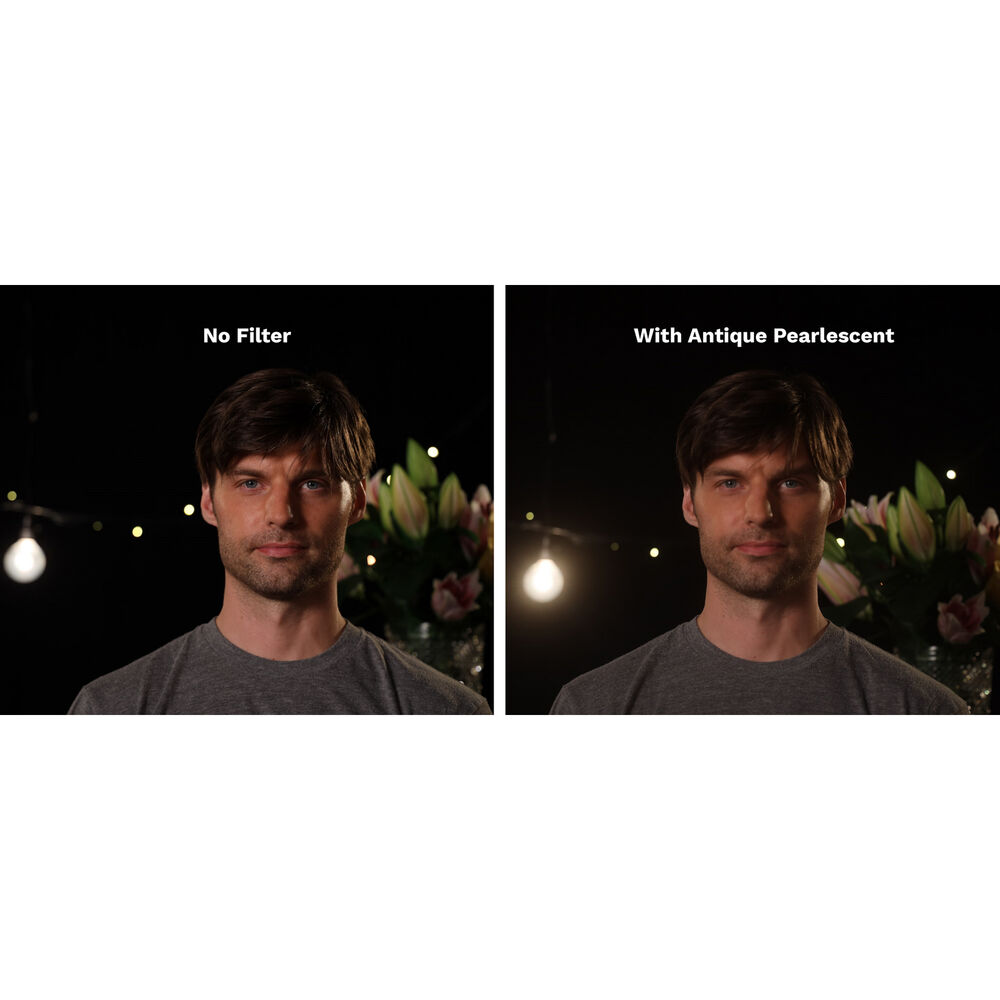 Фильтр Antique Pearlescent размером 4 x 4 дюйма и плотностью 1/4 от Tiffen создает мягкое, приятное атмосферное свечение, а также легкое обесцвечивание цветов и нежный кремовый ореол. Это делает его идеальным для предметов старины или для создания образа теплого летнего дня.