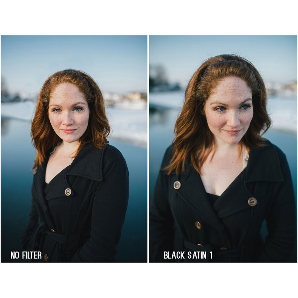 Фильтр Tiffen 67 мм Black Satin 1 помогает снизить общую контрастность изображения и лучше контролировать засветку в кадре. Помимо более зернистого рендеринга засветок, этот фильтр также помогает смягчить недостатки и морщины на лице, придавая им естественный, утонченный вид. Плотность 1 обеспечивает меньшую контрастность и снижение засветки, чем плотность 2, но при этом сохраняет мягкость и естественность.