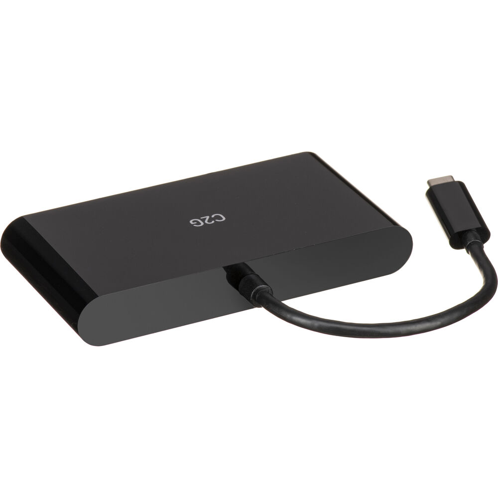 - Многопортовый адаптер C2G USB Type-C на HDMI, VGA, USB Type-A и RJ45 (черный)