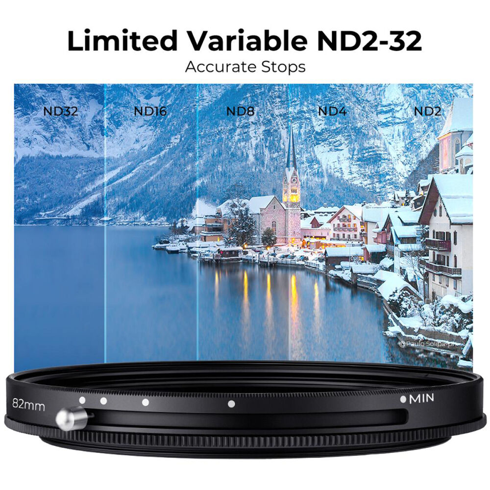 Этот 72-миллиметровый фильтр 2-в-1 от K&F Concept сочетает в себе переменный ND-фильтр с диафрагмой от 1 до 5 ступеней и круговой поляризатор. Он позволяет одновременно уменьшить экспозицию изображения и уменьшить отражения. Изготовленный из оптического стекла с водонепроницаемым и устойчивым к царапинам многослойным покрытием, этот фильтр пропускает всего 0,7% света. Оправа фильтра изготовлена из алюминия и вращается между пятью значениями ND.