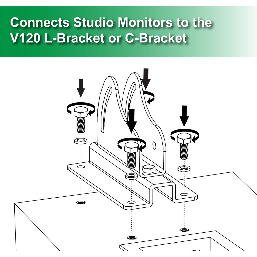 Профессионалы в области звука, желающие закрепить свои студийные мониторы на стене или потолке, оценят адаптер IsoAcoustic V120 107x50 — прочную и надежную стальную монтажную пластину, которая крепится болтами к динамику и к L-образному кронштейну и C-образному кронштейну V120 для настенного и потолочного монтажа.